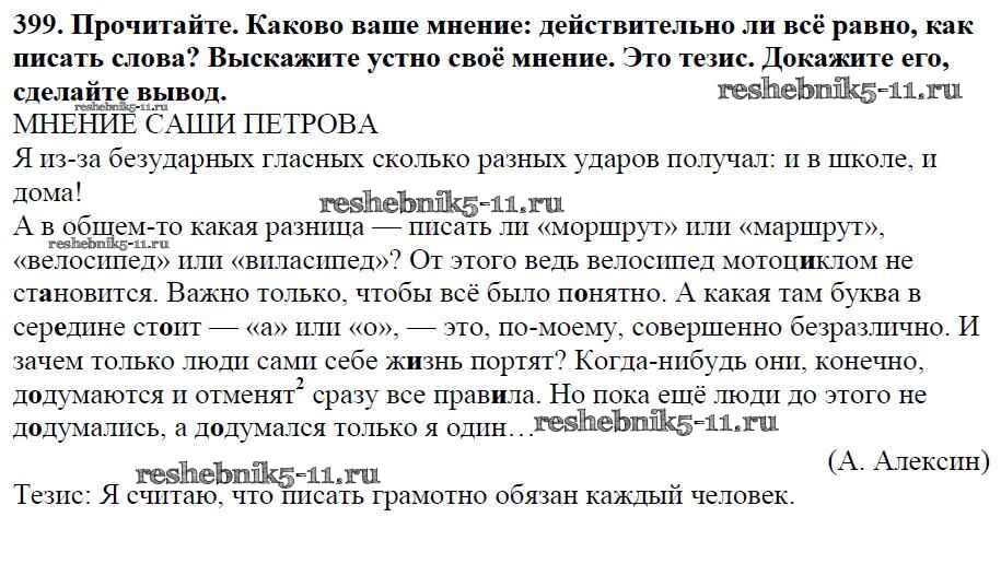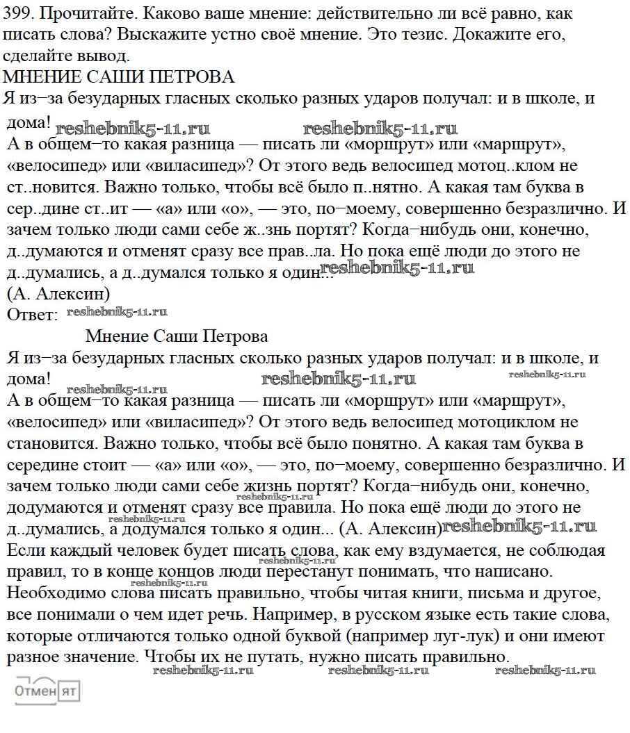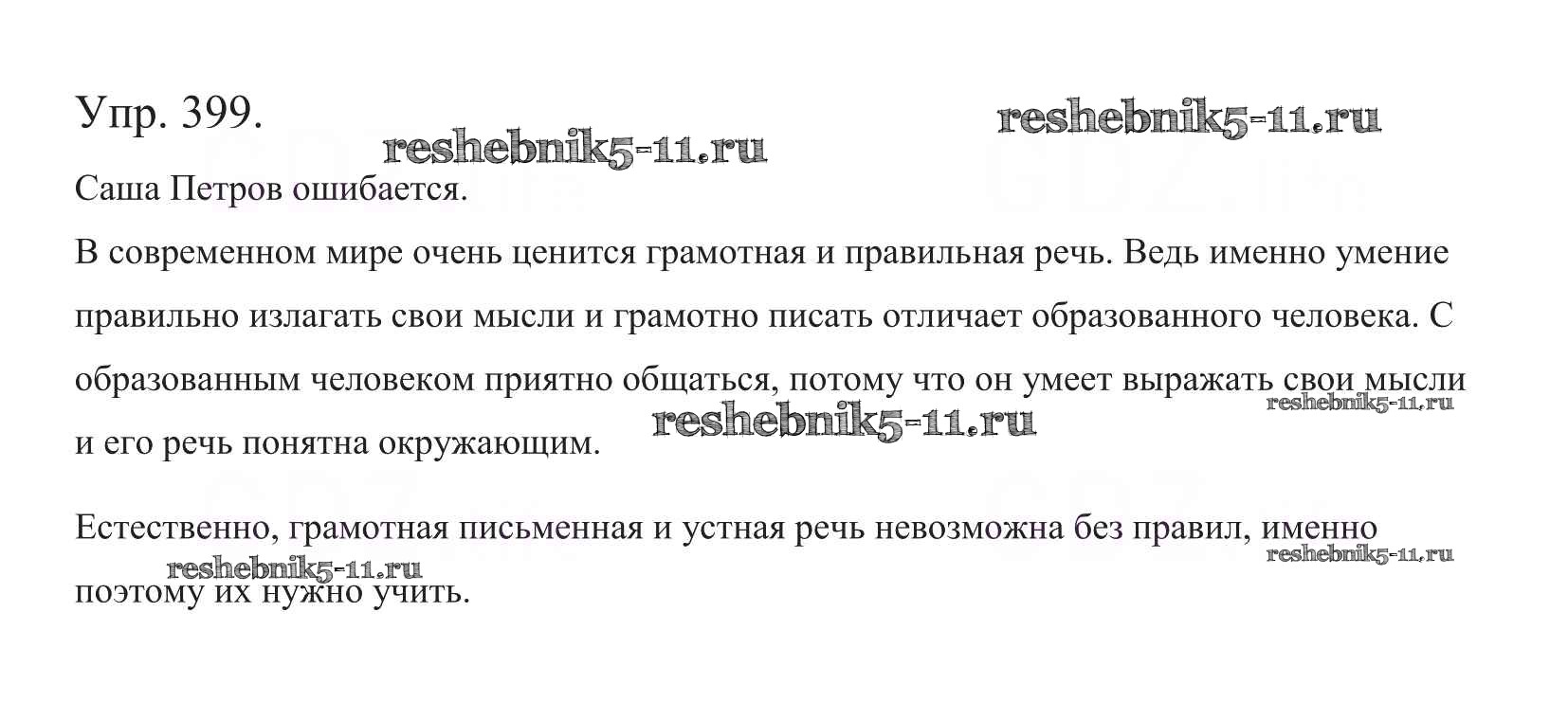 Русский язык за 5 класс Баранов Учебник Просвещение часть 2. упражнение 399