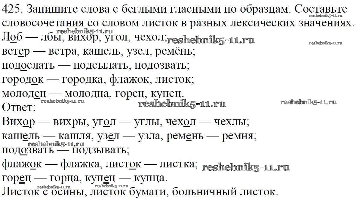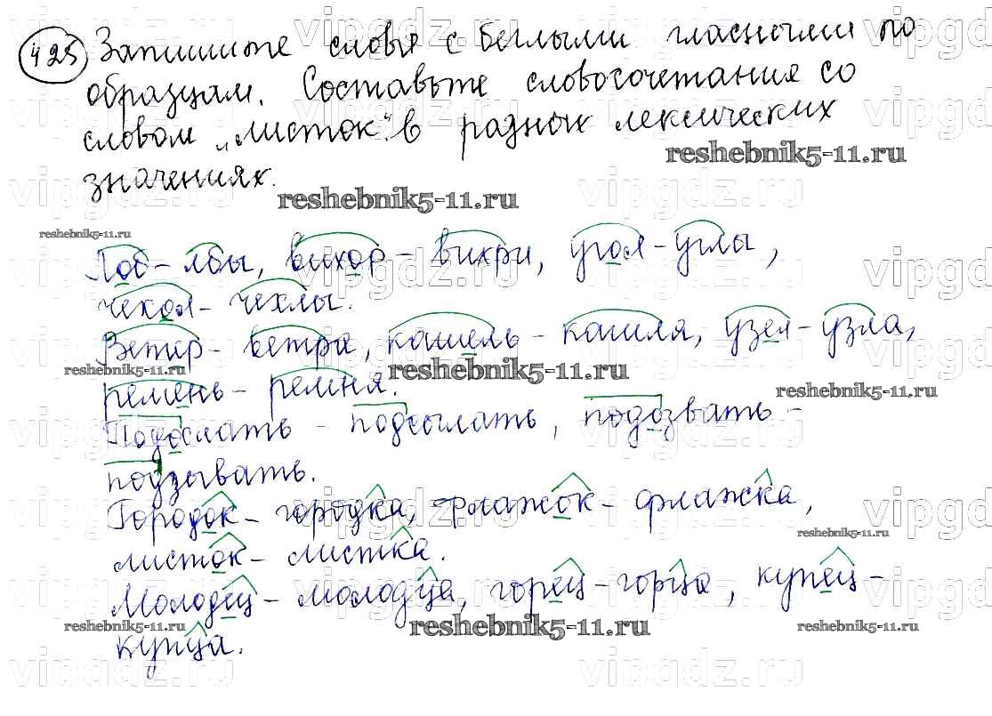 Готовая домашняя работа с ответами по Русскому языку за 5 класс Баранов, Ладыженская, Тростенцова, Кулибаба, Григорян Учебник Часть 1, 2 Просвещение 2016 ФГОС - Часть 2. Упражнения 425