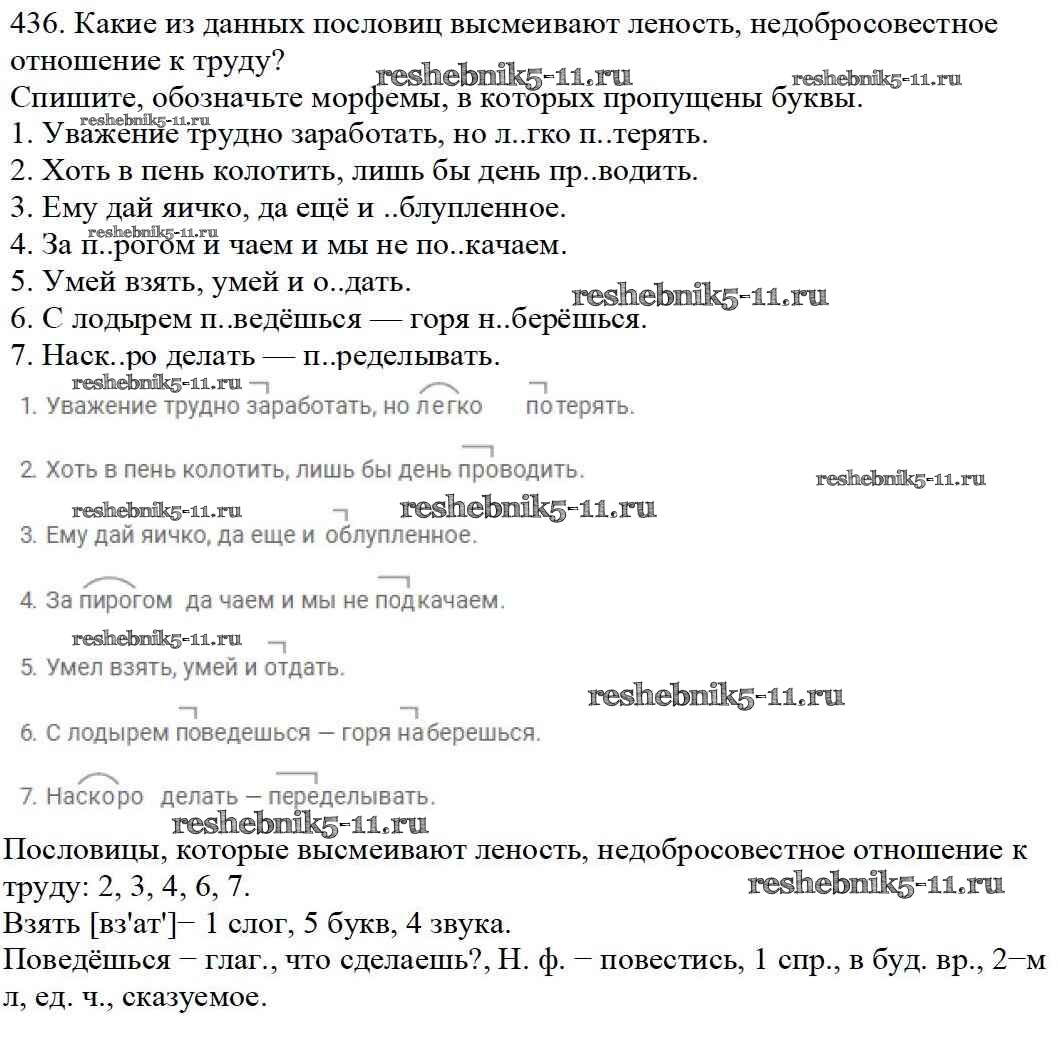 Русский язык за 5 класс Баранов Учебник Просвещение часть 2. упражнение 436