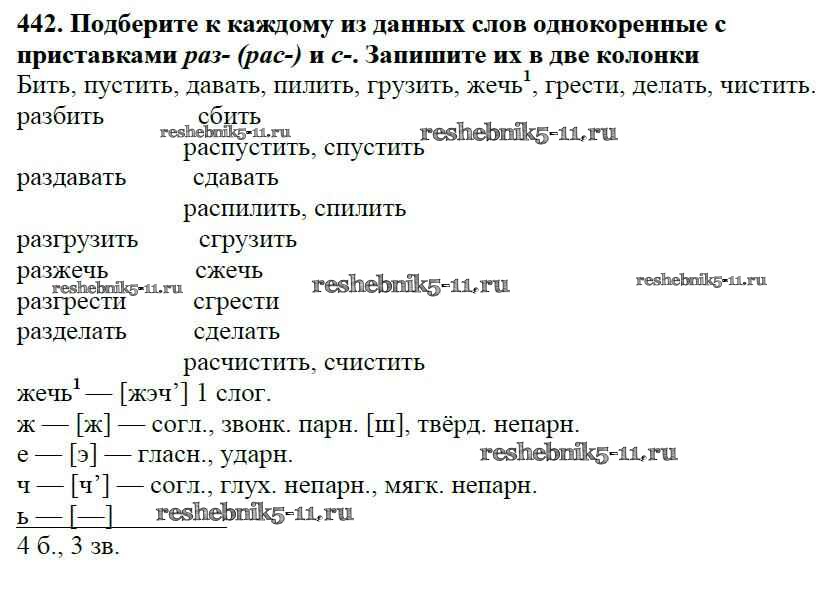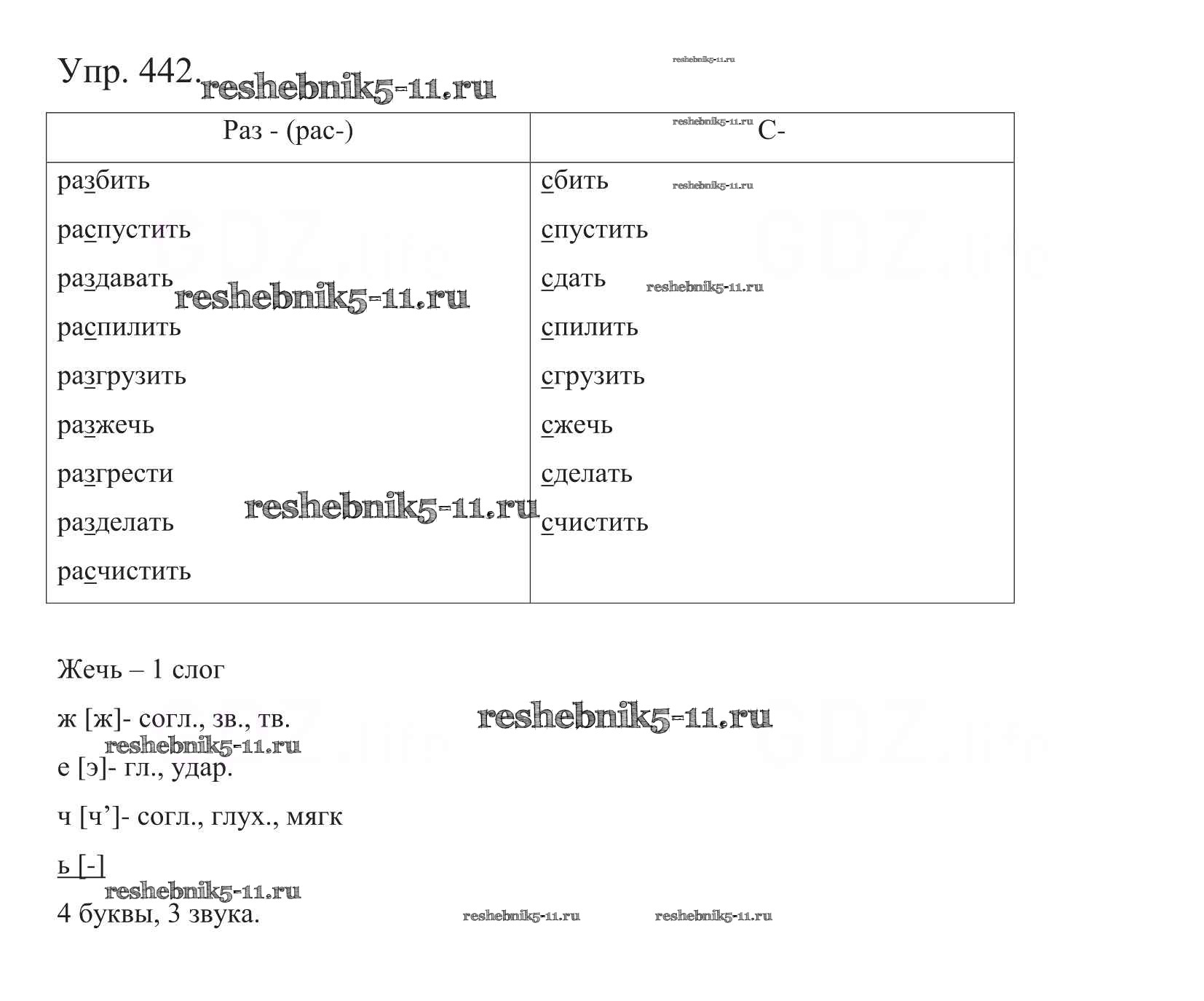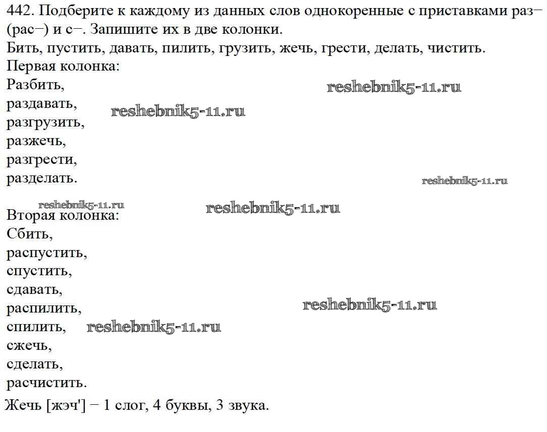 Русский язык за 5 класс Баранов Учебник Просвещение часть 2. упражнение 442
