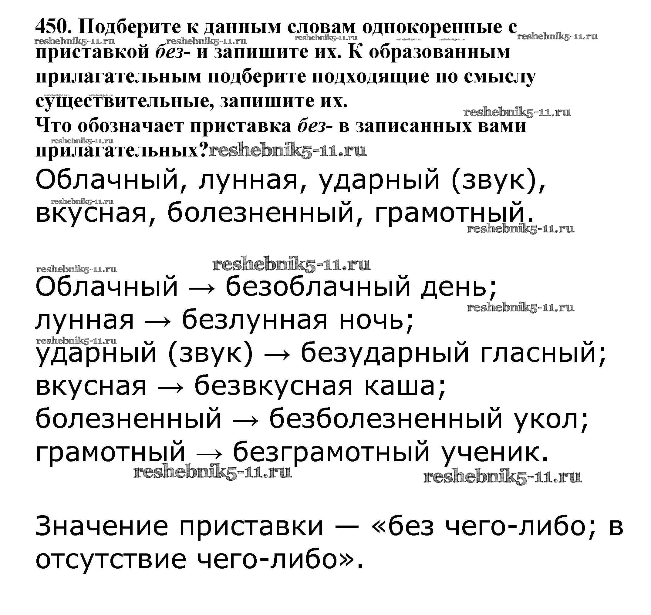 Готовая домашняя работа с ответами по Русскому языку за 5 класс Баранов, Ладыженская, Тростенцова, Кулибаба, Григорян Учебник Часть 1, 2 Просвещение 2016 ФГОС - Часть 2. Упражнения 450
