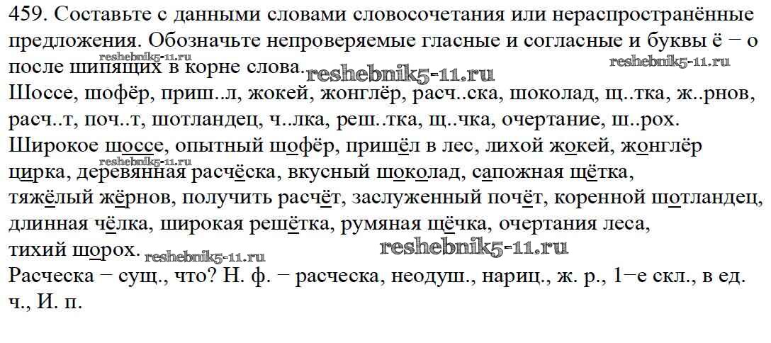 Готовая домашняя работа с ответами по Русскому языку за 5 класс Баранов, Ладыженская, Тростенцова, Кулибаба, Григорян Учебник Часть 1, 2 Просвещение 2016 ФГОС - Часть 2. Упражнения 459