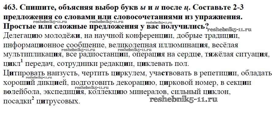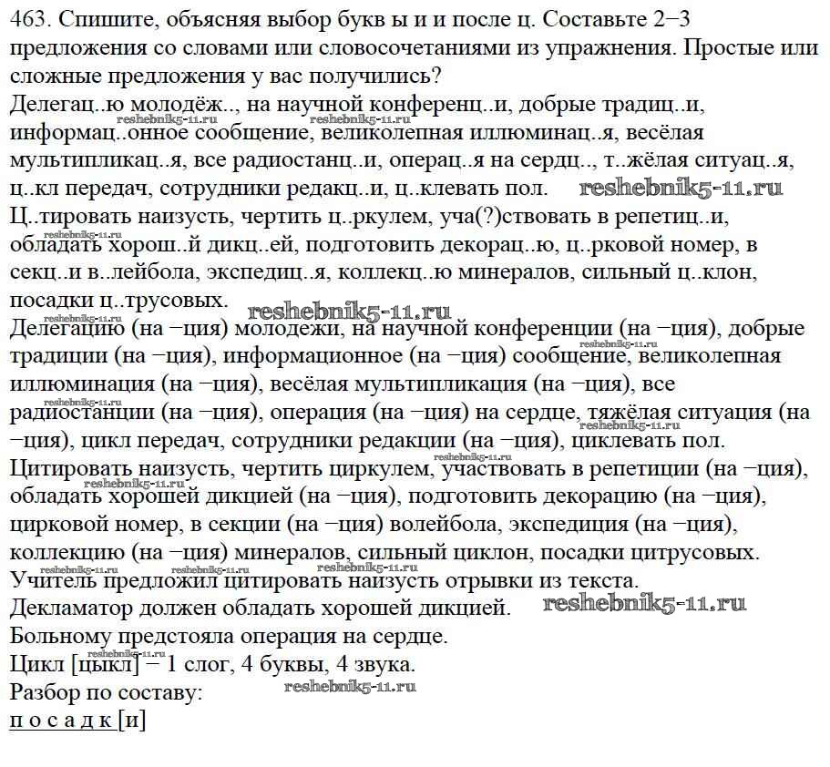 Готовая домашняя работа с ответами по Русскому языку за 5 класс Баранов, Ладыженская, Тростенцова, Кулибаба, Григорян Учебник Часть 1, 2 Просвещение 2016 ФГОС - Часть 2. Упражнения 463