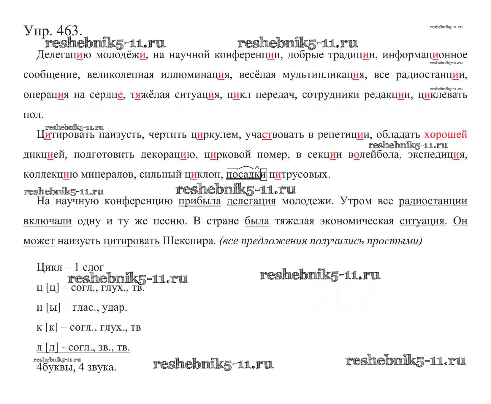 Русский язык за 5 класс Баранов Учебник Просвещение часть 2. упражнение 463