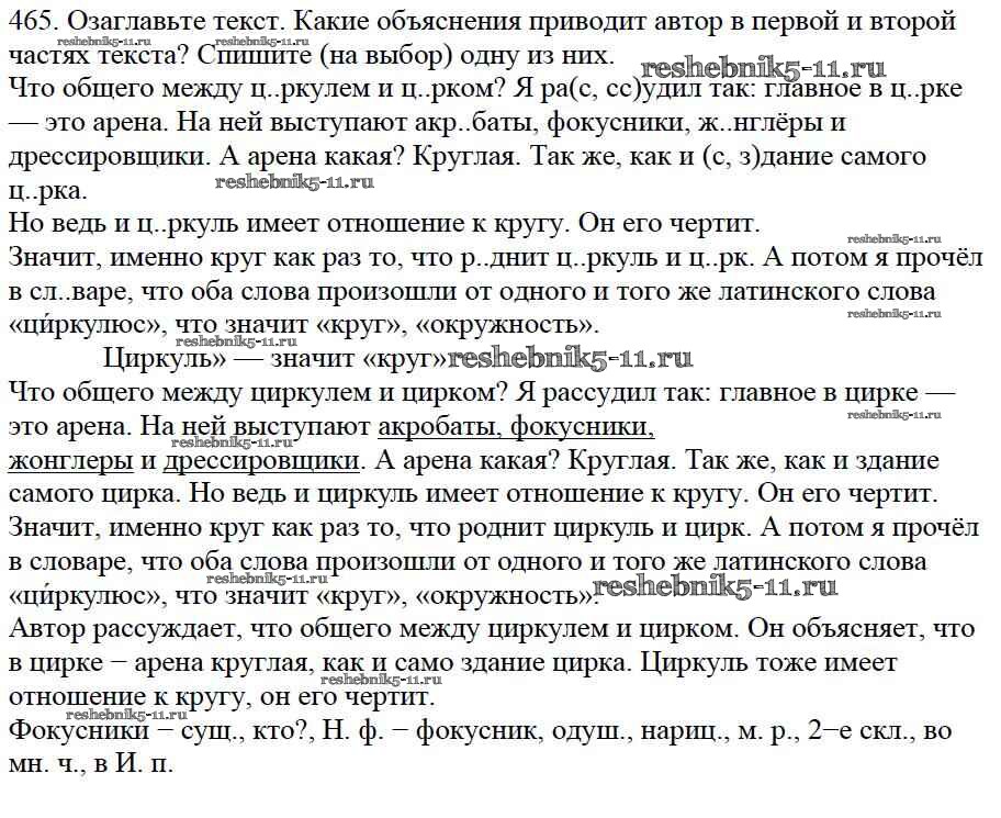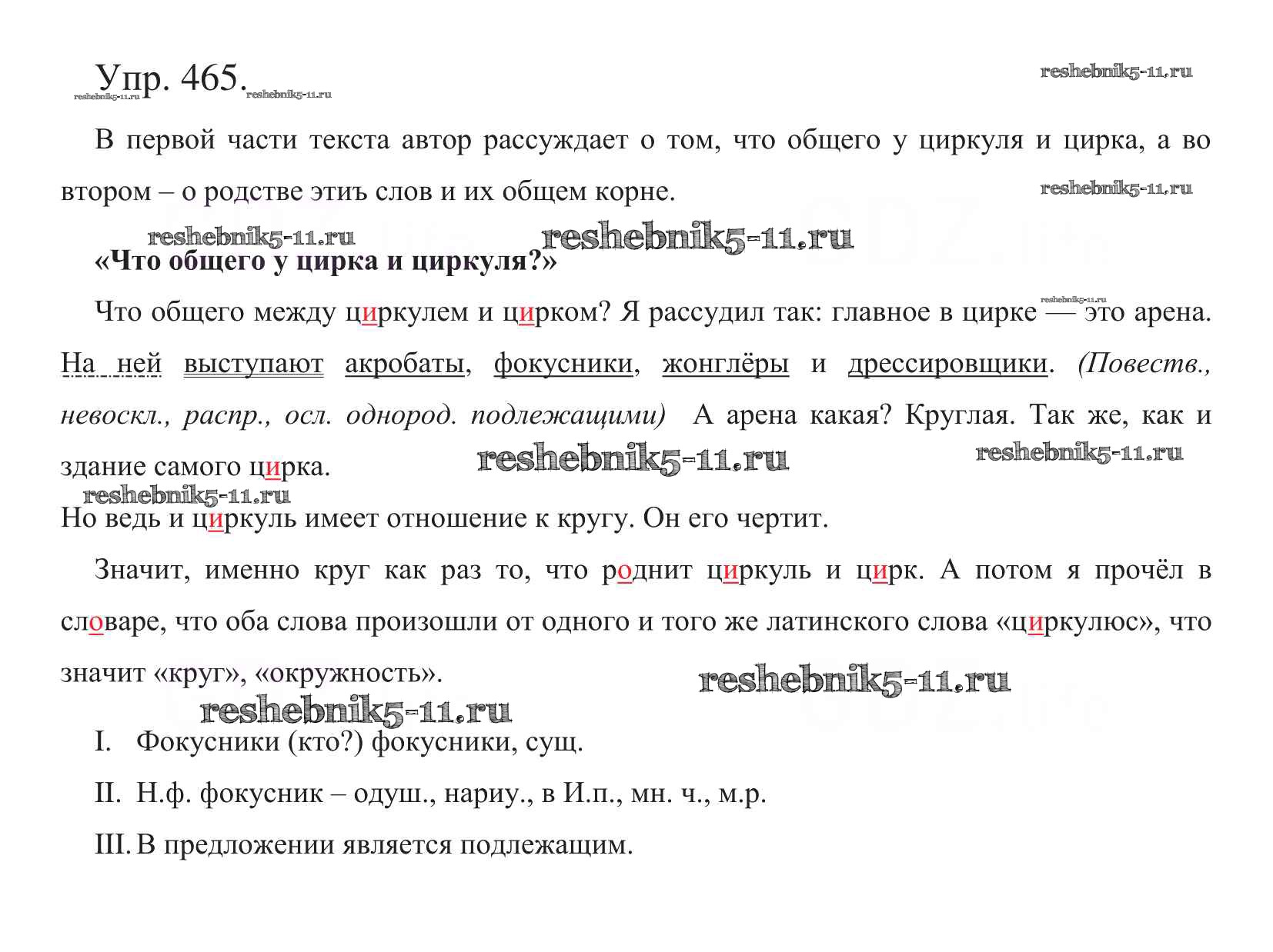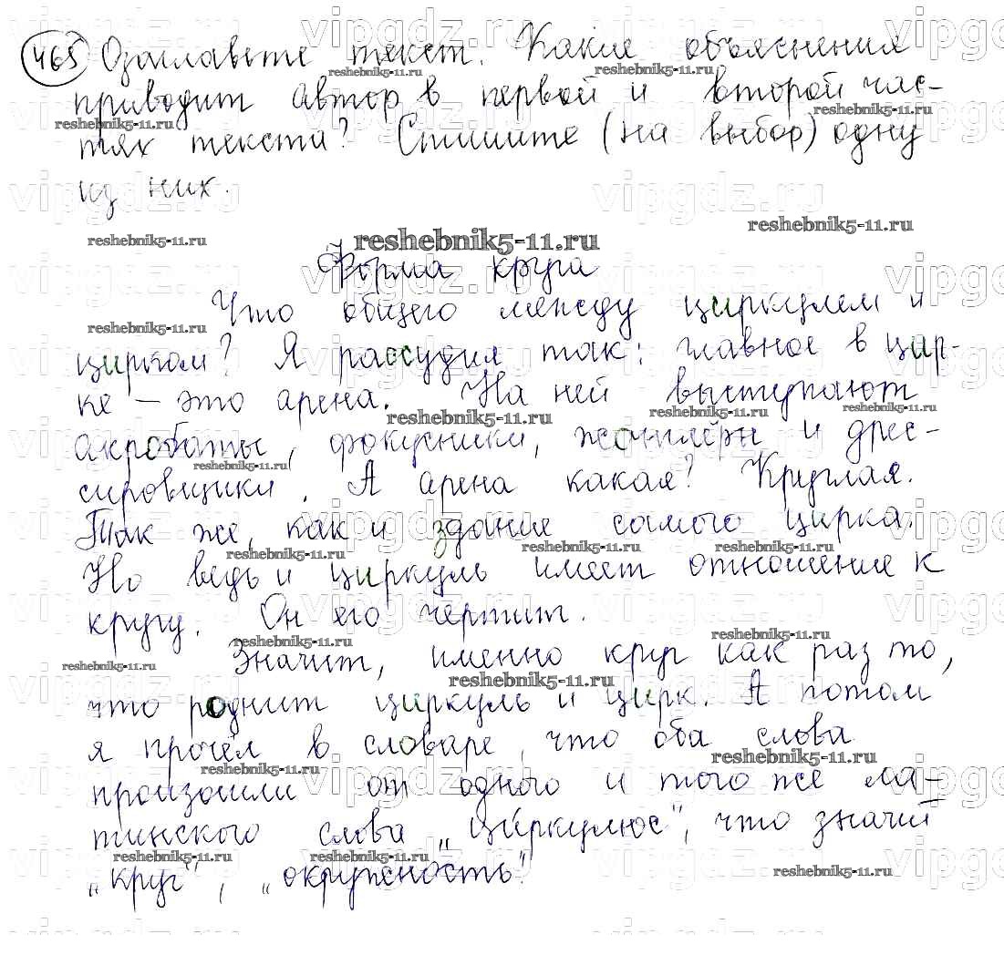 Русский язык за 5 класс Баранов Учебник Просвещение часть 2. упражнение 465