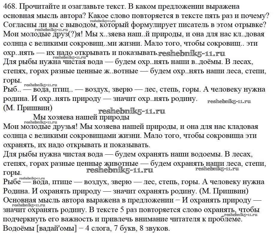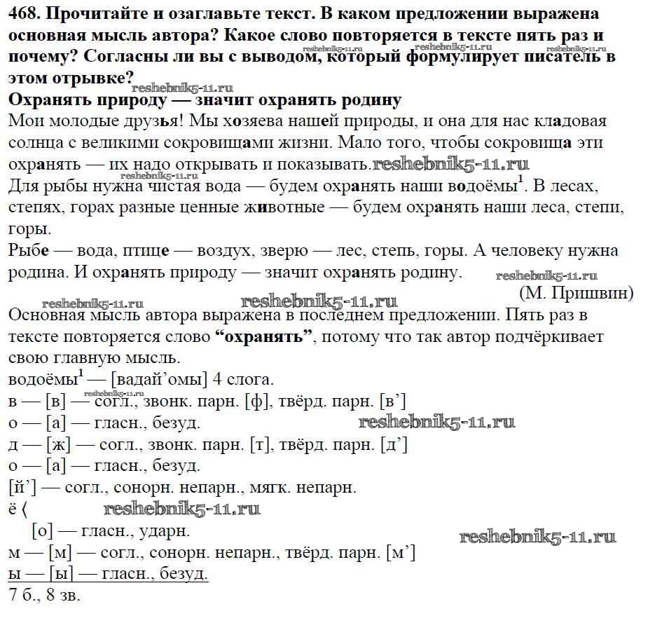 Русский язык за 5 класс Баранов Учебник Просвещение часть 2. упражнение 468