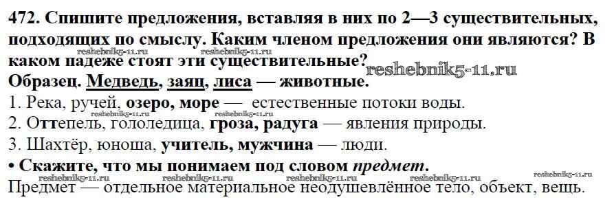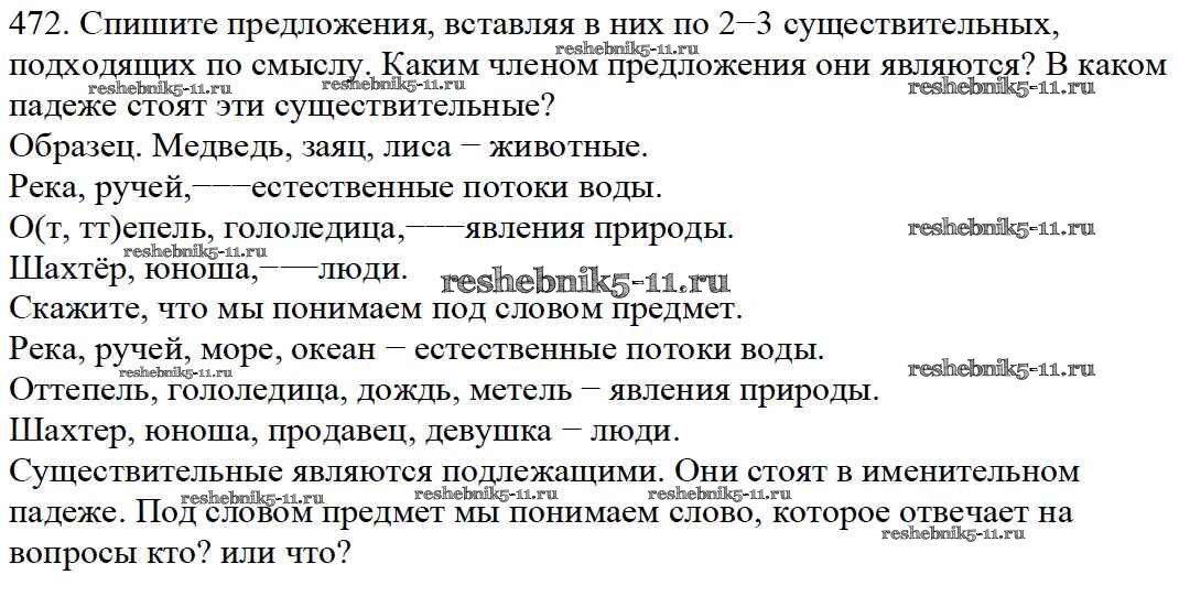 Готовая домашняя работа с ответами по Русскому языку за 5 класс Баранов, Ладыженская, Тростенцова, Кулибаба, Григорян Учебник Часть 1, 2 Просвещение 2016 ФГОС - Часть 2. Упражнения 472