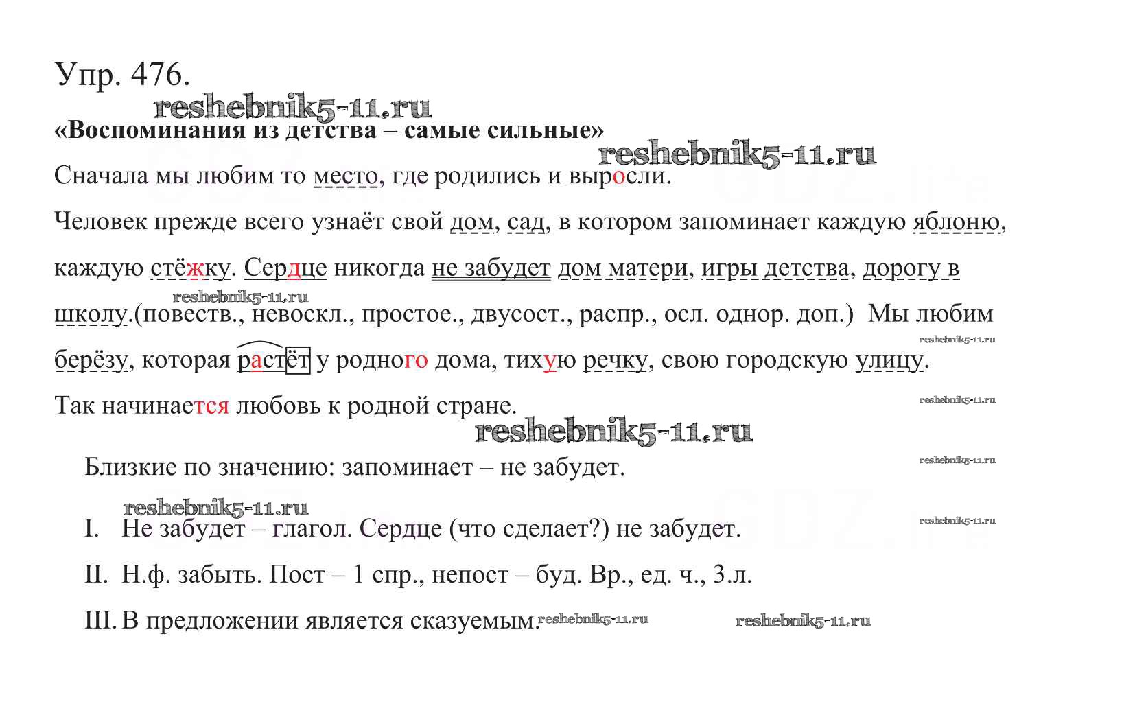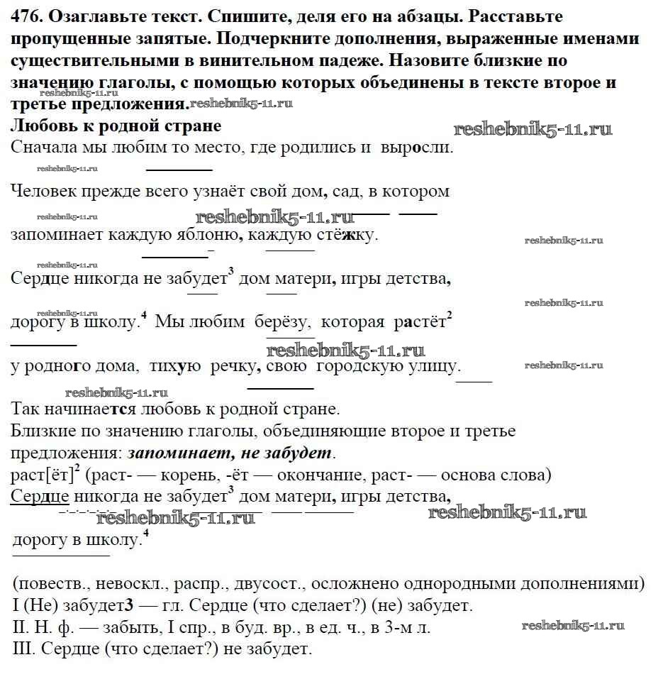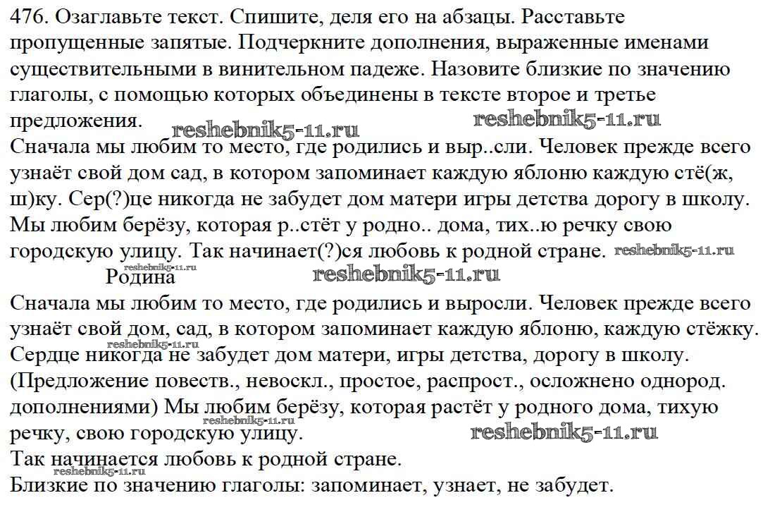 Готовая домашняя работа с ответами по Русскому языку за 5 класс Баранов, Ладыженская, Тростенцова, Кулибаба, Григорян Учебник Часть 1, 2 Просвещение 2016 ФГОС - Часть 2. Упражнения 476