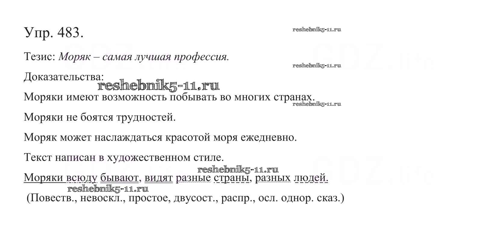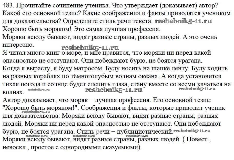 Готовая домашняя работа с ответами по Русскому языку за 5 класс Баранов, Ладыженская, Тростенцова, Кулибаба, Григорян Учебник Часть 1, 2 Просвещение 2016 ФГОС - Часть 2. Упражнения 483