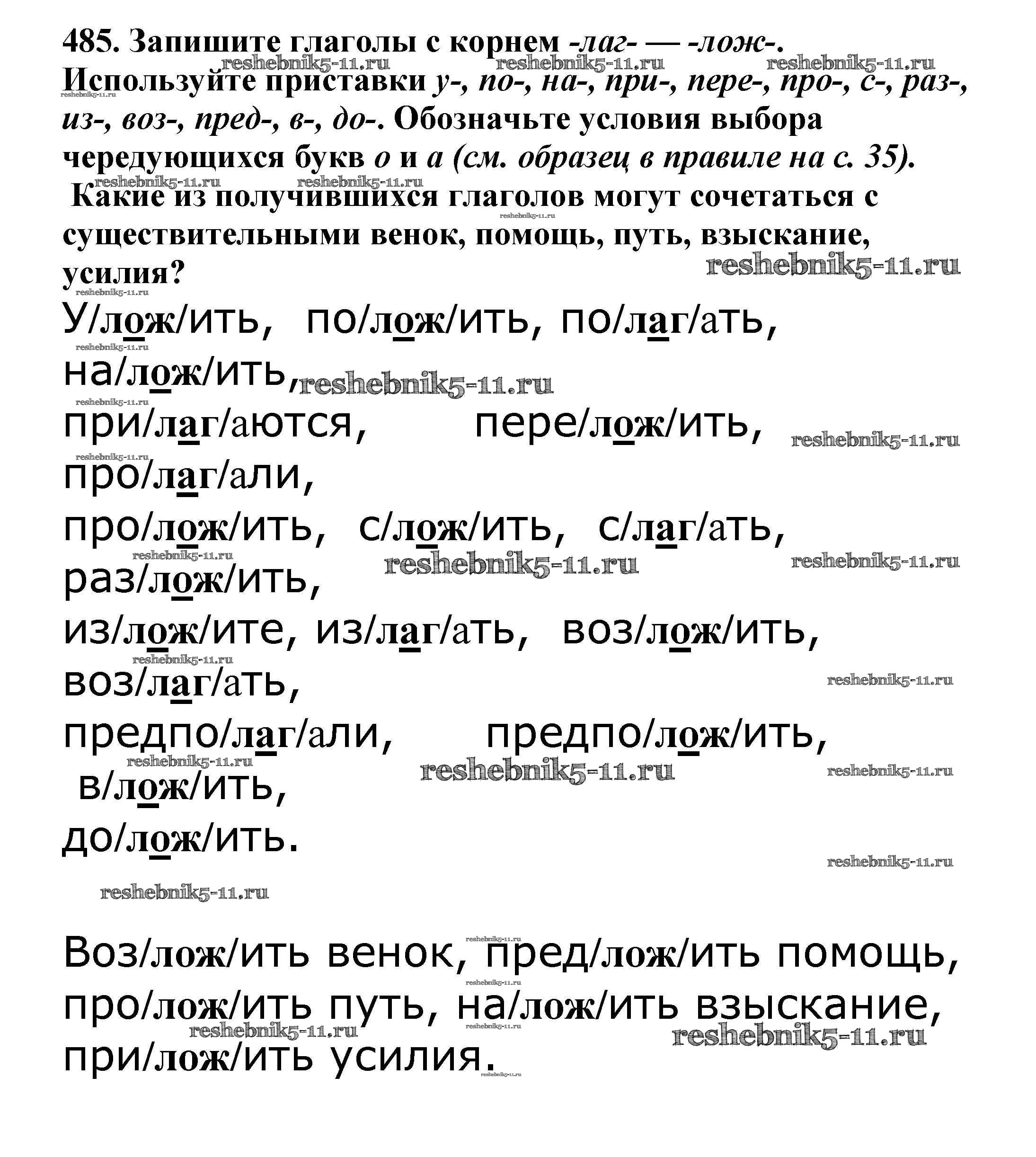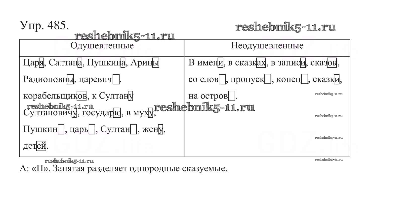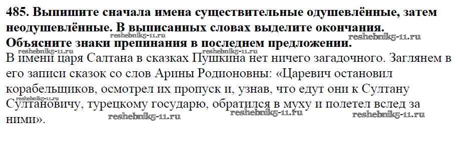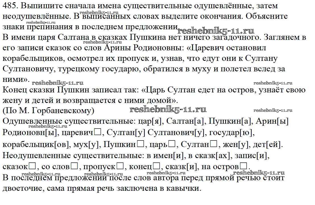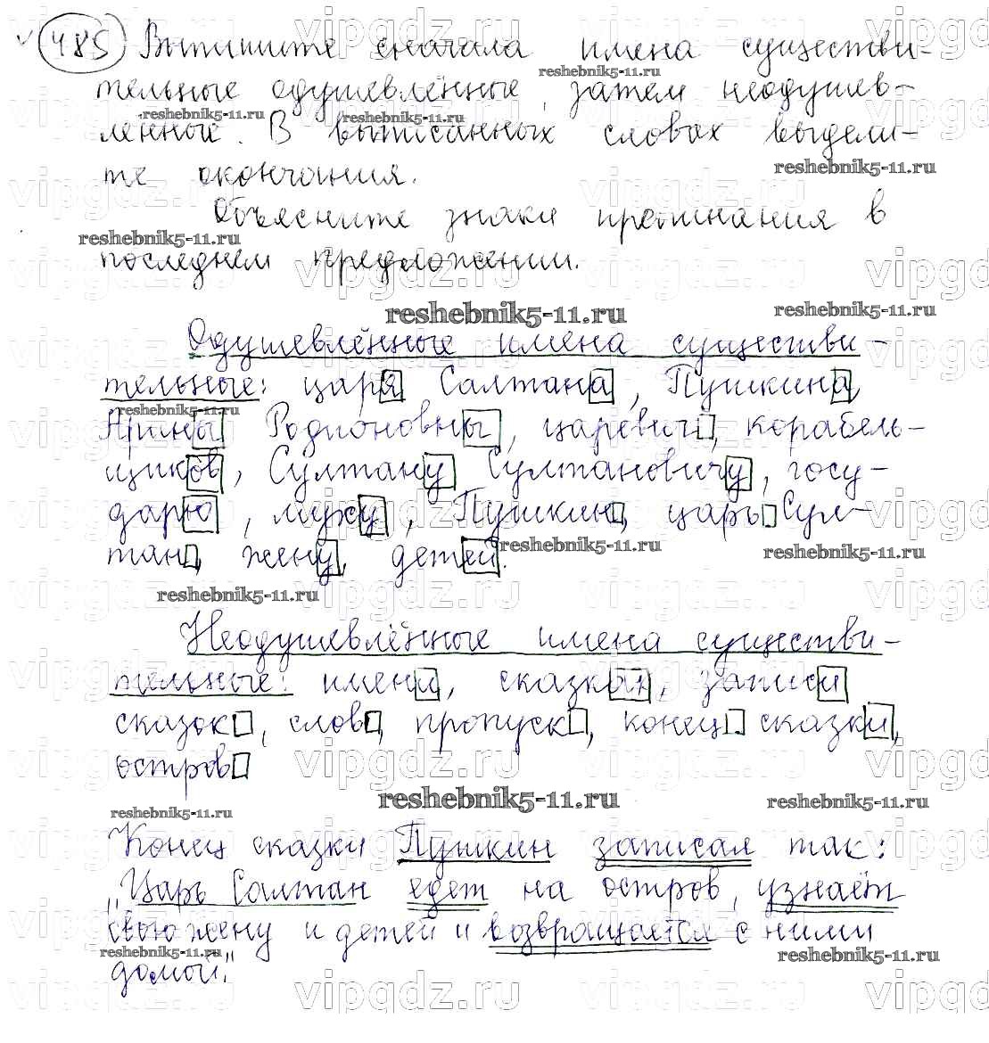 Готовая домашняя работа с ответами по Русскому языку за 5 класс Баранов, Ладыженская, Тростенцова, Кулибаба, Григорян Учебник Часть 1, 2 Просвещение 2016 ФГОС - Часть 2. Упражнения 485