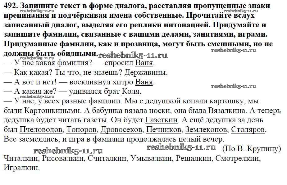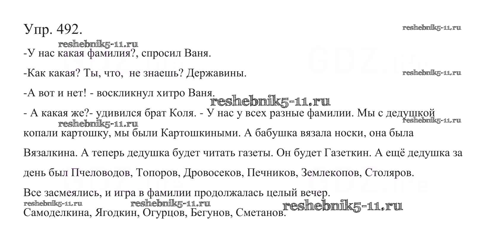 Русский язык за 5 класс Баранов Учебник Просвещение часть 2. упражнение 492