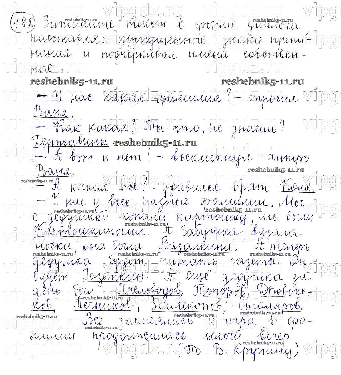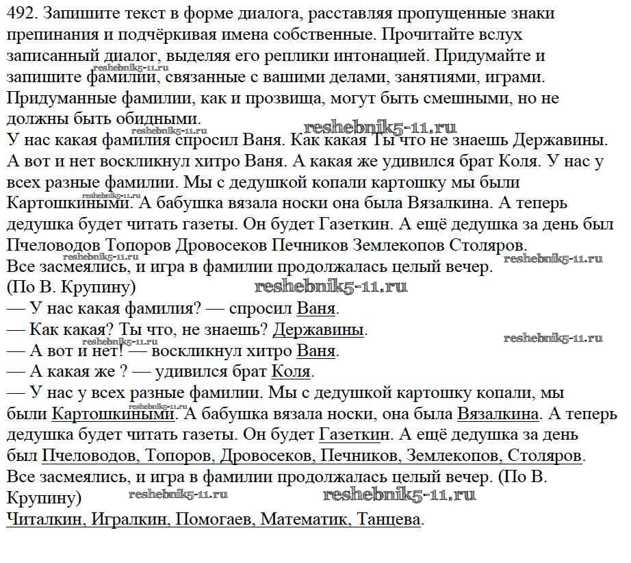 Готовая домашняя работа с ответами по Русскому языку за 5 класс Баранов, Ладыженская, Тростенцова, Кулибаба, Григорян Учебник Часть 1, 2 Просвещение 2016 ФГОС - Часть 2. Упражнения 492