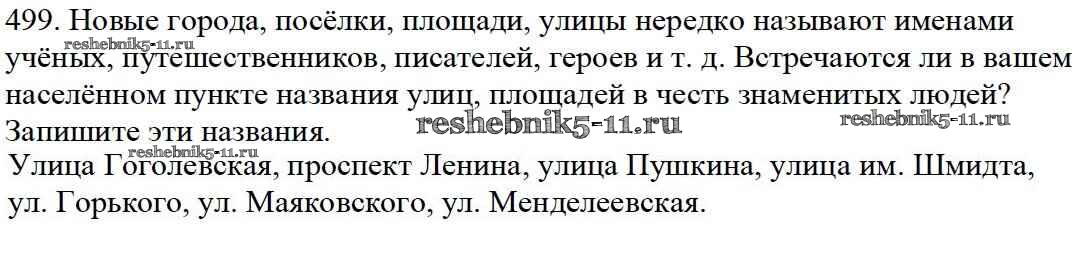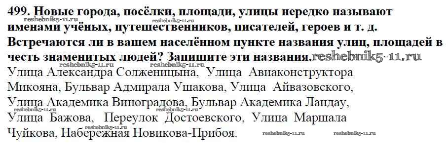 Готовая домашняя работа с ответами по Русскому языку за 5 класс Баранов, Ладыженская, Тростенцова, Кулибаба, Григорян Учебник Часть 1, 2 Просвещение 2016 ФГОС - Часть 2. Упражнения 499