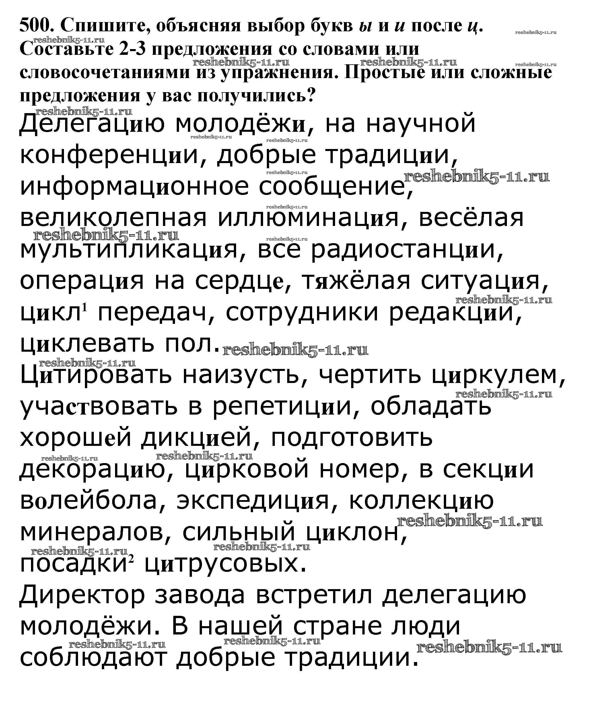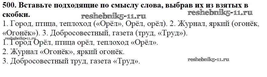 Русский язык за 5 класс Баранов Учебник Просвещение часть 2. упражнение 500