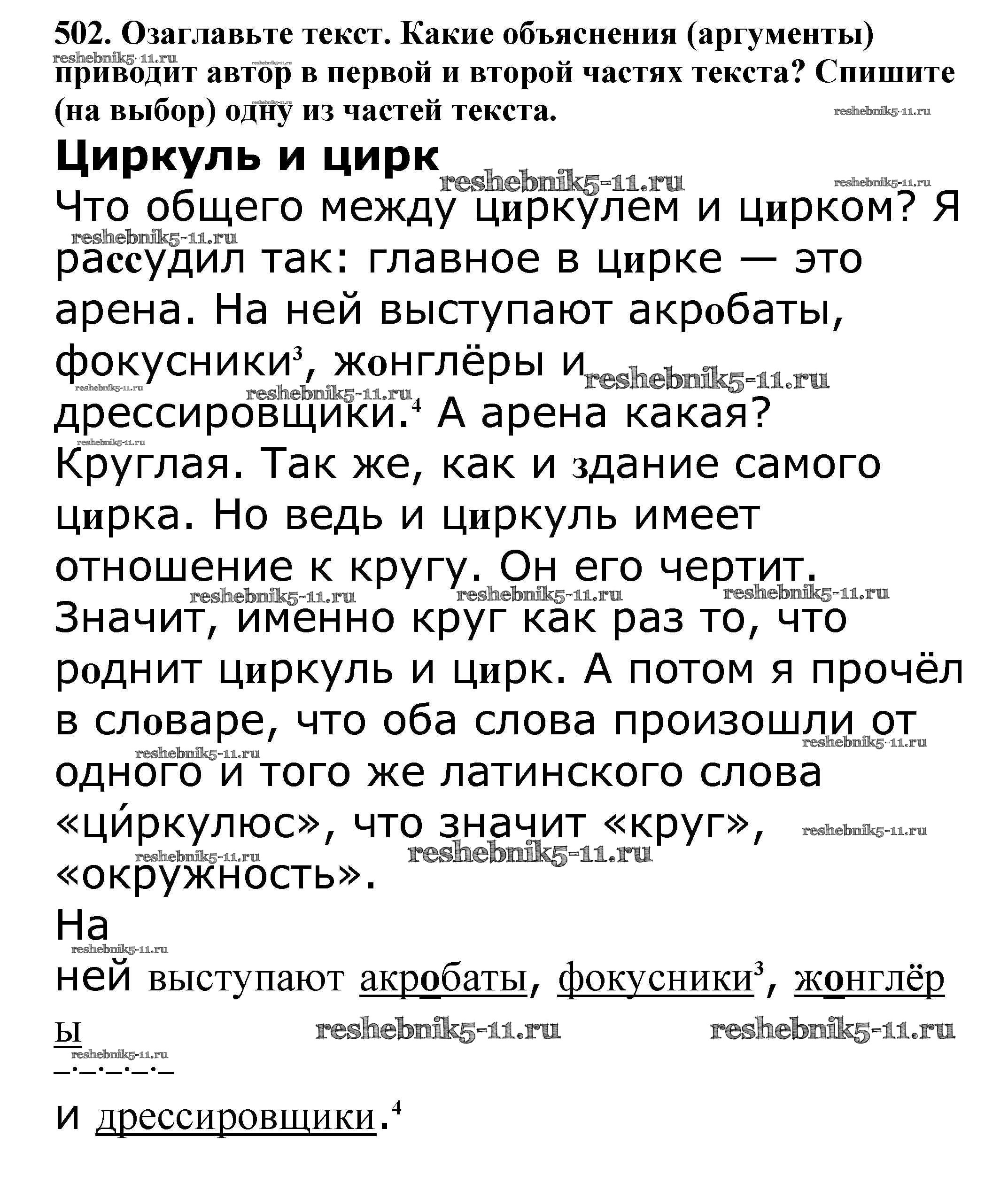 Русский язык за 5 класс Баранов Учебник Просвещение часть 2. упражнение 502