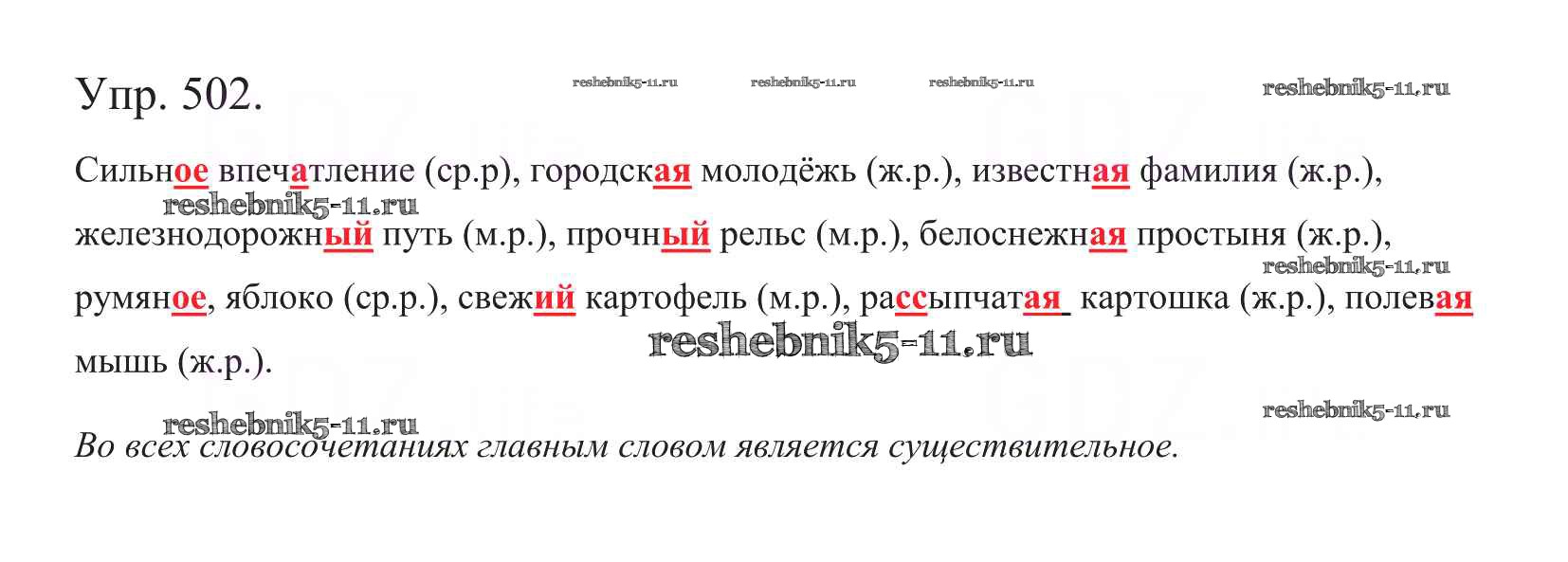 Готовая домашняя работа с ответами по Русскому языку за 5 класс Баранов, Ладыженская, Тростенцова, Кулибаба, Григорян Учебник Часть 1, 2 Просвещение 2016 ФГОС - Часть 2. Упражнения 502