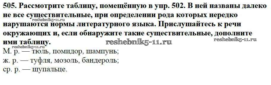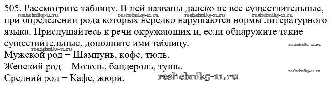 Готовая домашняя работа с ответами по Русскому языку за 5 класс Баранов, Ладыженская, Тростенцова, Кулибаба, Григорян Учебник Часть 1, 2 Просвещение 2016 ФГОС - Часть 2. Упражнения 505