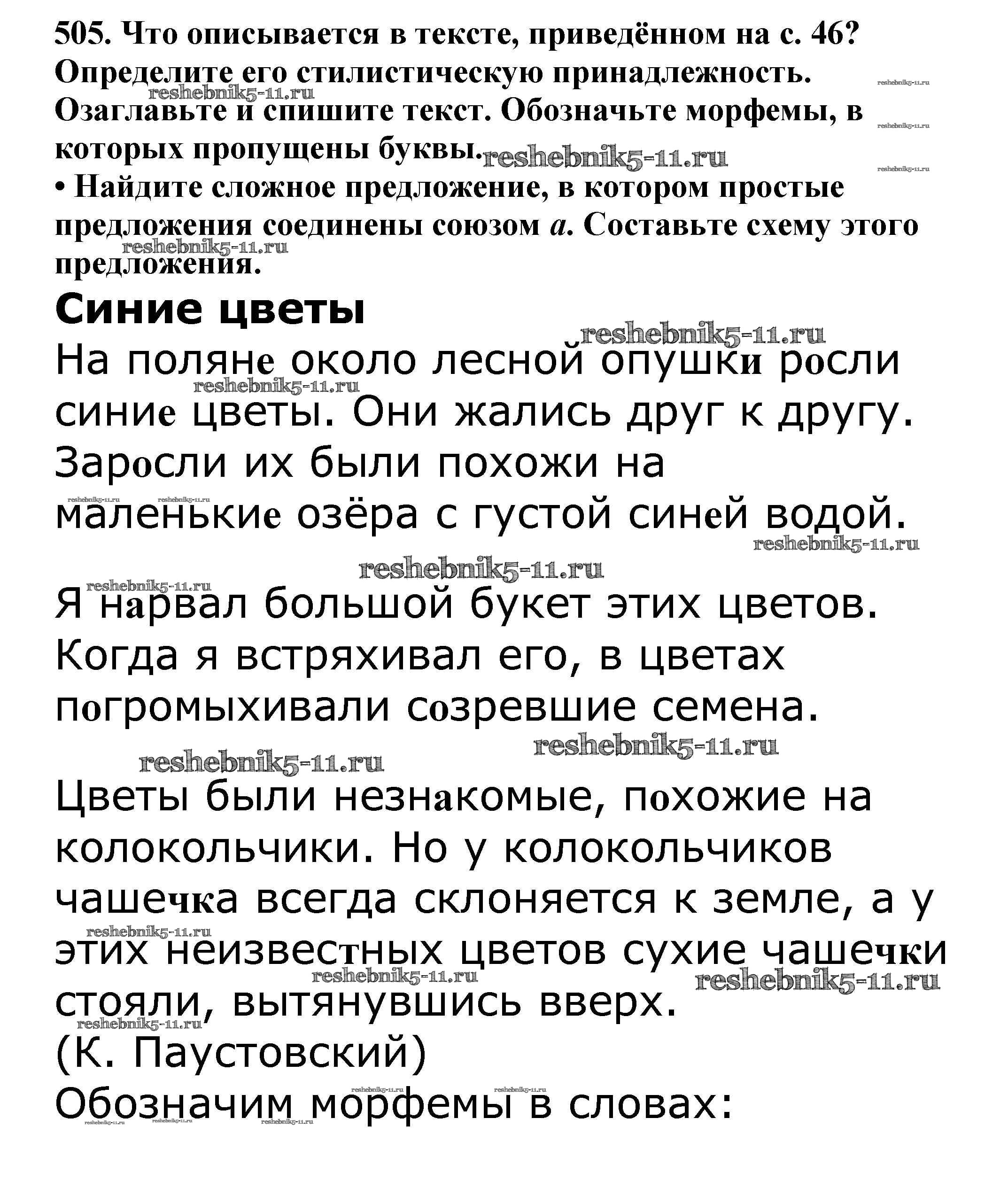 Русский язык за 5 класс Баранов Учебник Просвещение часть 2. упражнение 505