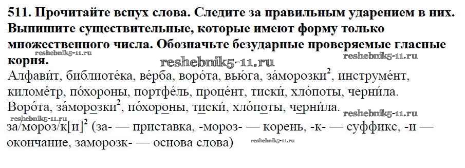 Готовая домашняя работа с ответами по Русскому языку за 5 класс Баранов, Ладыженская, Тростенцова, Кулибаба, Григорян Учебник Часть 1, 2 Просвещение 2016 ФГОС - Часть 2. Упражнения 511