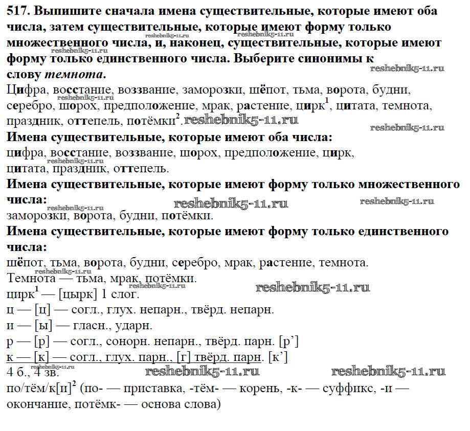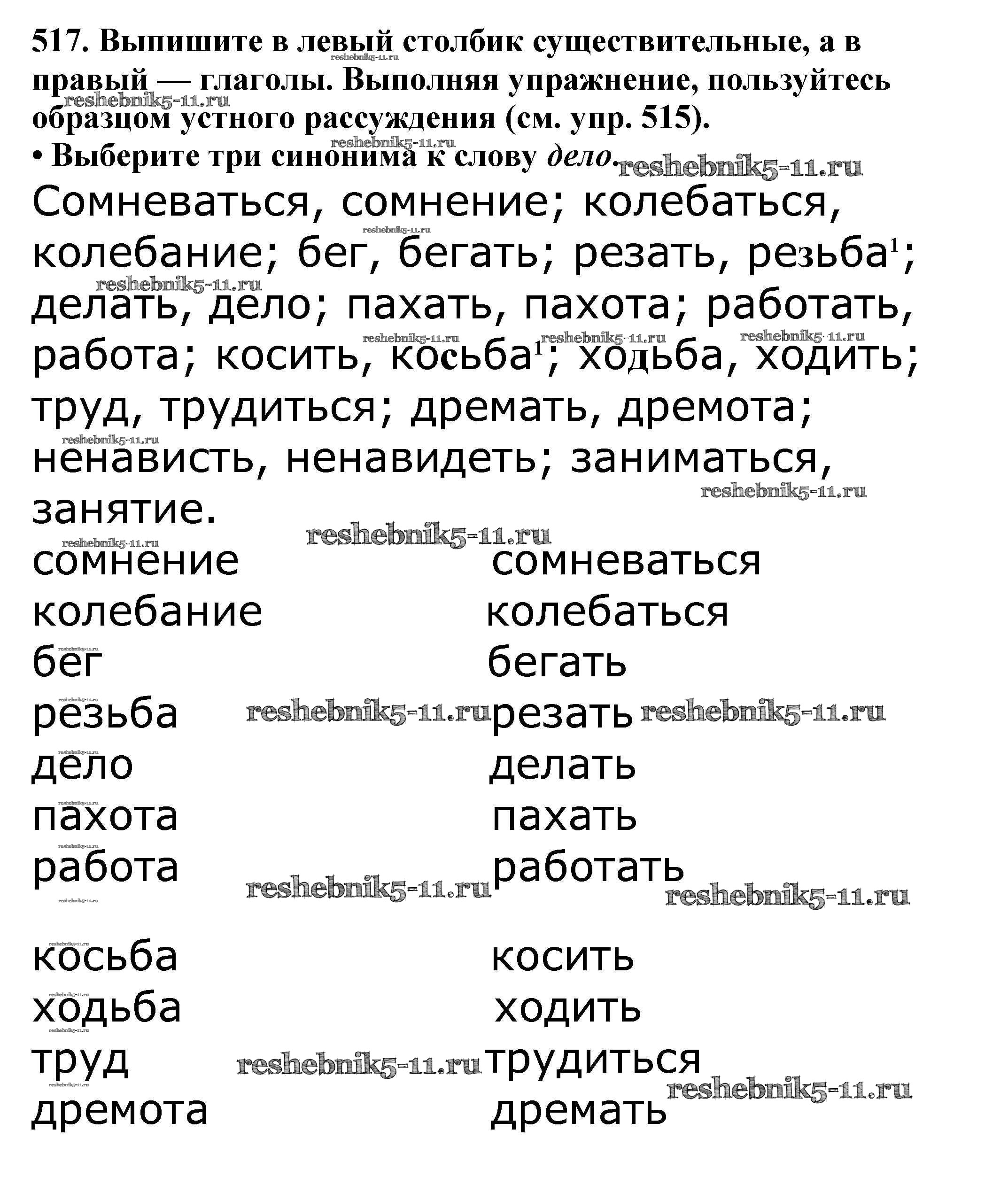 Русский язык за 5 класс Баранов Учебник Просвещение часть 2. упражнение 517