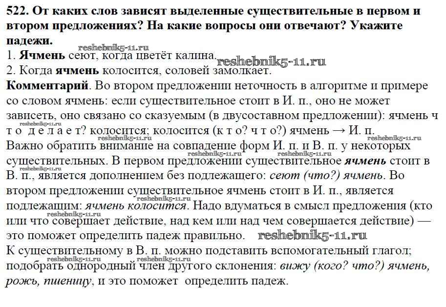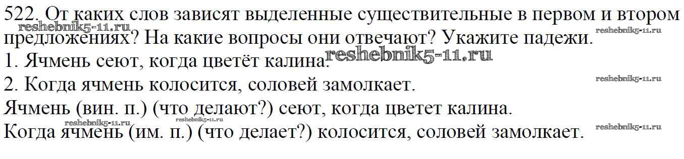 Русский язык за 5 класс Баранов Учебник Просвещение часть 2. упражнение 522