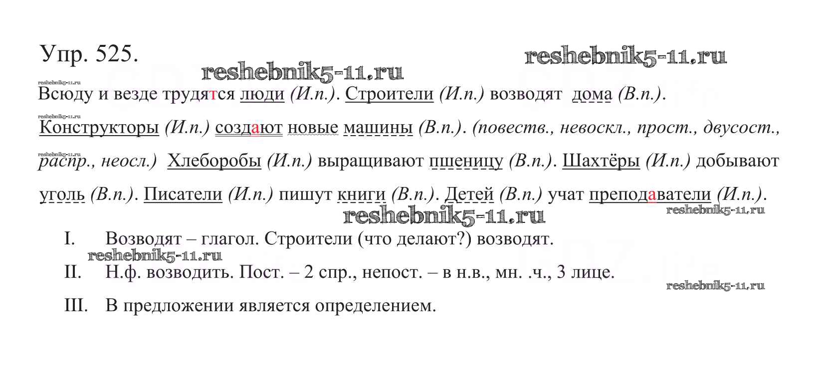 Готовая домашняя работа с ответами по Русскому языку за 5 класс Баранов, Ладыженская, Тростенцова, Кулибаба, Григорян Учебник Часть 1, 2 Просвещение 2016 ФГОС - Часть 2. Упражнения 525