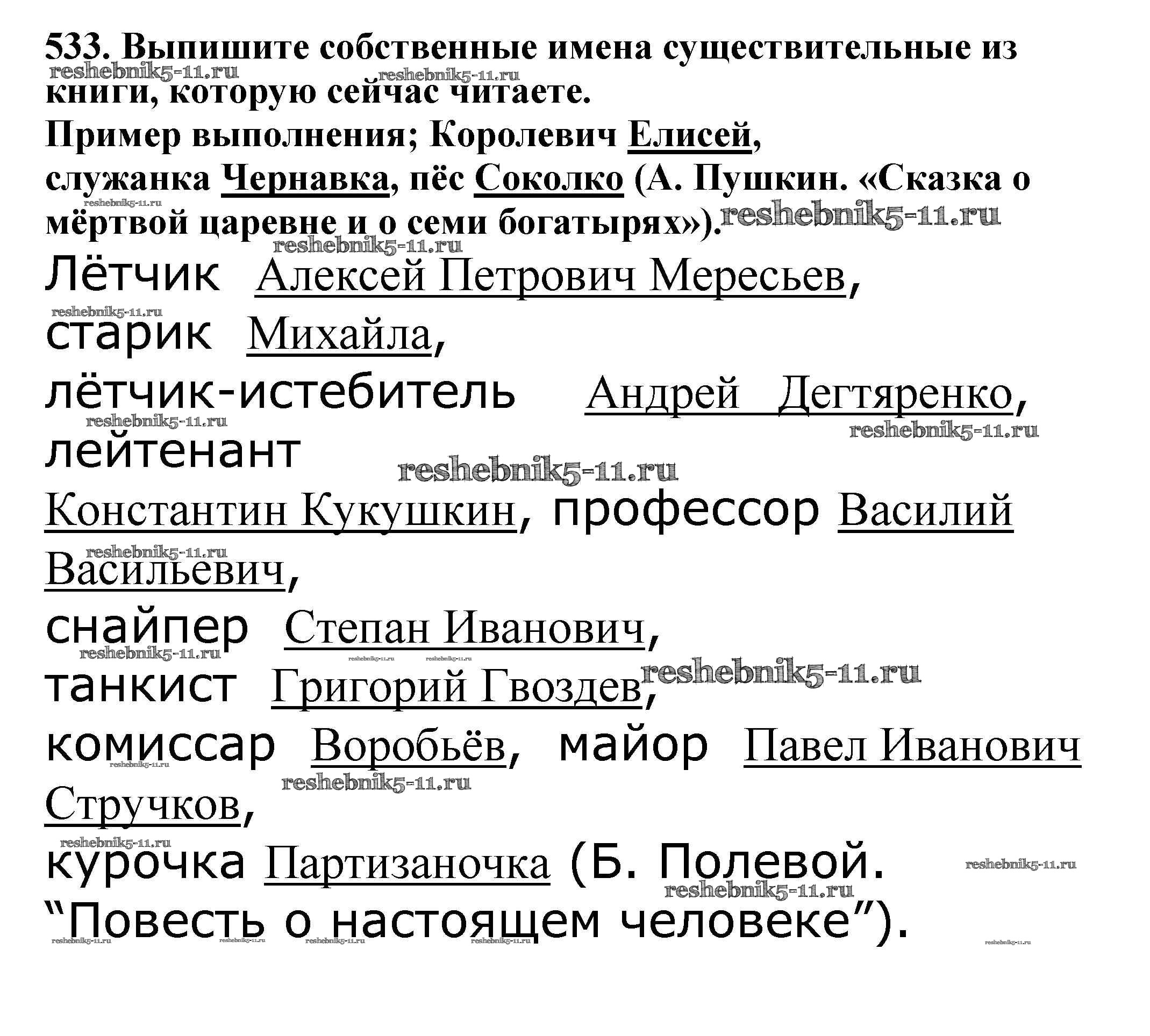 Готовая домашняя работа с ответами по Русскому языку за 5 класс Баранов, Ладыженская, Тростенцова, Кулибаба, Григорян Учебник Часть 1, 2 Просвещение 2016 ФГОС - Часть 2. Упражнения 533