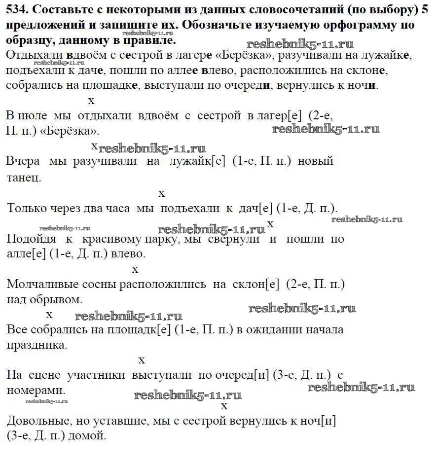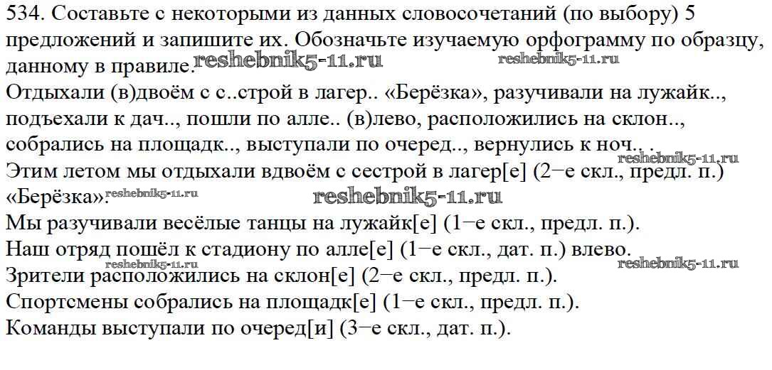 Готовая домашняя работа с ответами по Русскому языку за 5 класс Баранов, Ладыженская, Тростенцова, Кулибаба, Григорян Учебник Часть 1, 2 Просвещение 2016 ФГОС - Часть 2. Упражнения 534