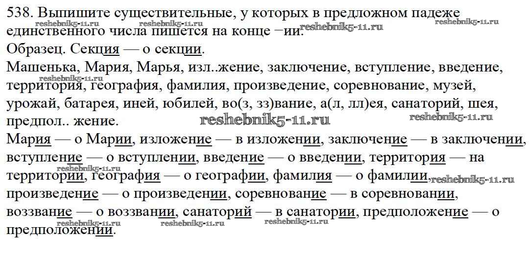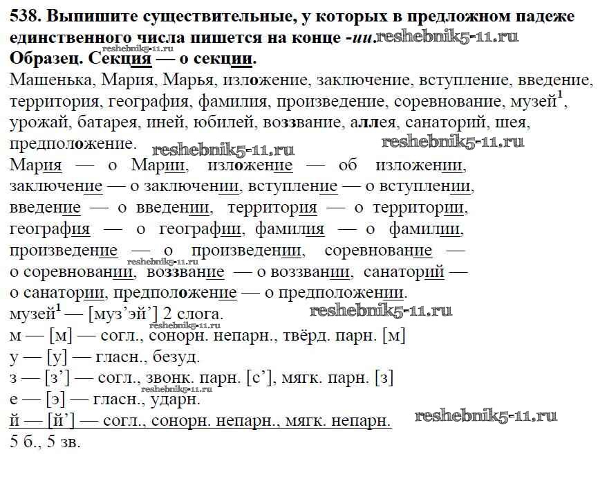 Готовая домашняя работа с ответами по Русскому языку за 5 класс Баранов, Ладыженская, Тростенцова, Кулибаба, Григорян Учебник Часть 1, 2 Просвещение 2016 ФГОС - Часть 2. Упражнения 538