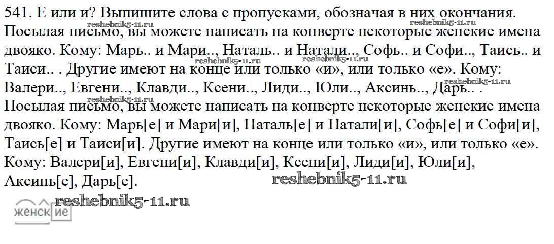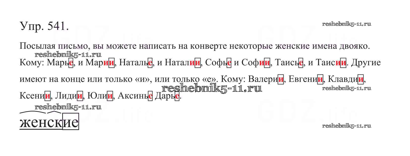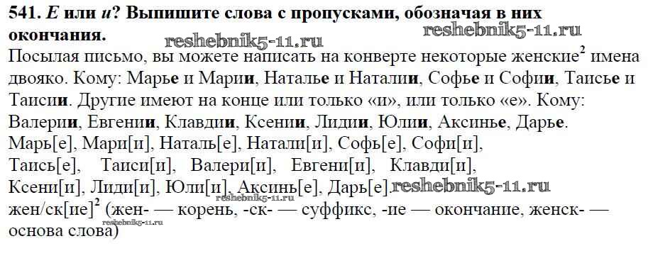Готовая домашняя работа с ответами по Русскому языку за 5 класс Баранов, Ладыженская, Тростенцова, Кулибаба, Григорян Учебник Часть 1, 2 Просвещение 2016 ФГОС - Часть 2. Упражнения 541