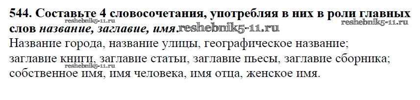Готовая домашняя работа с ответами по Русскому языку за 5 класс Баранов, Ладыженская, Тростенцова, Кулибаба, Григорян Учебник Часть 1, 2 Просвещение 2016 ФГОС - Часть 2. Упражнения 544