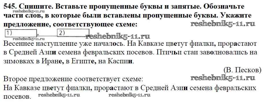 Русский язык за 5 класс Баранов Учебник Просвещение часть 2. упражнение 545