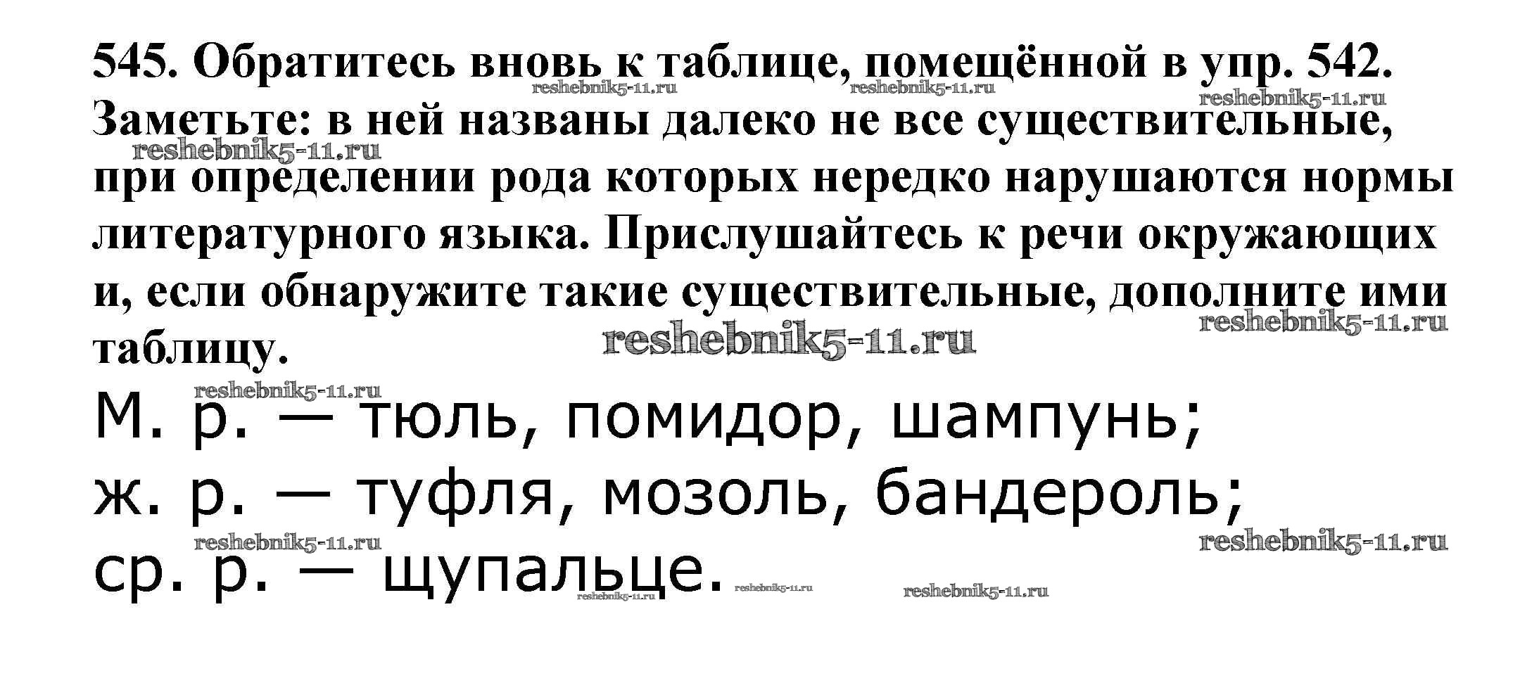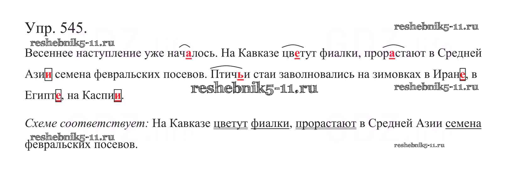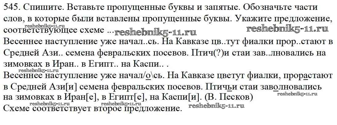 Готовая домашняя работа с ответами по Русскому языку за 5 класс Баранов, Ладыженская, Тростенцова, Кулибаба, Григорян Учебник Часть 1, 2 Просвещение 2016 ФГОС - Часть 2. Упражнения 545