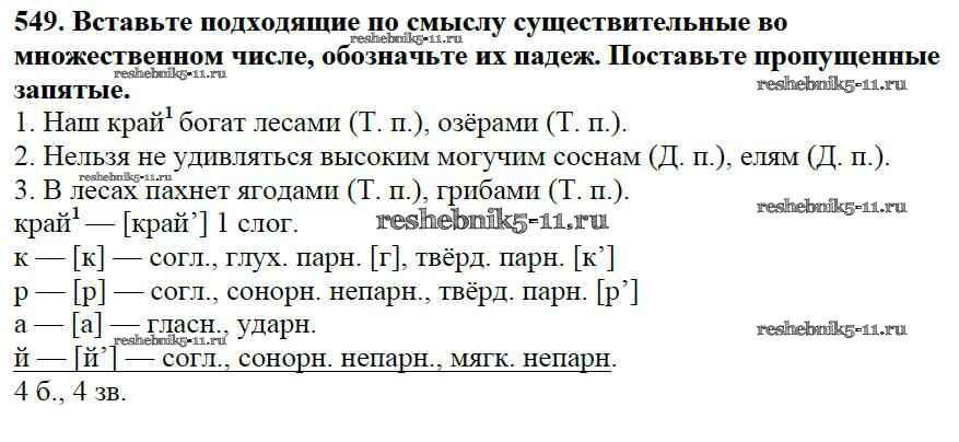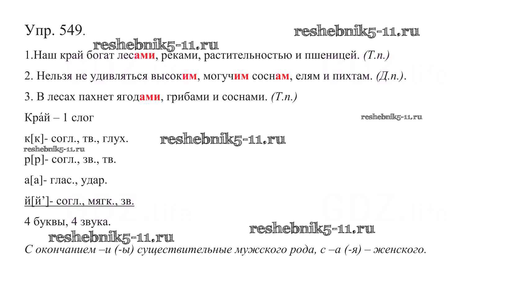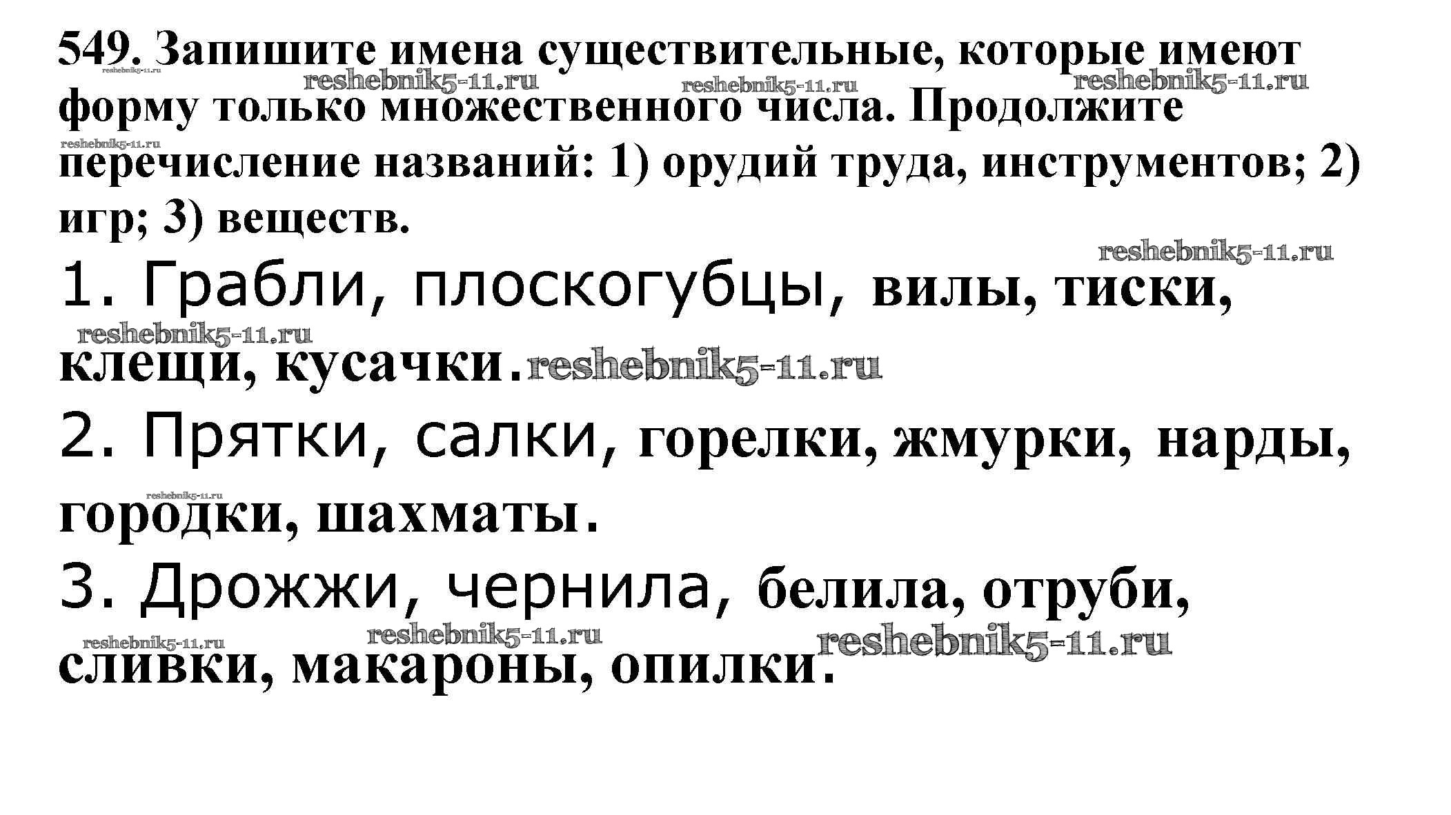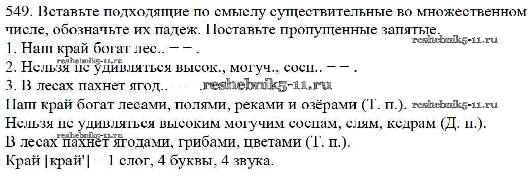 Готовая домашняя работа с ответами по Русскому языку за 5 класс Баранов, Ладыженская, Тростенцова, Кулибаба, Григорян Учебник Часть 1, 2 Просвещение 2016 ФГОС - Часть 2. Упражнения 549