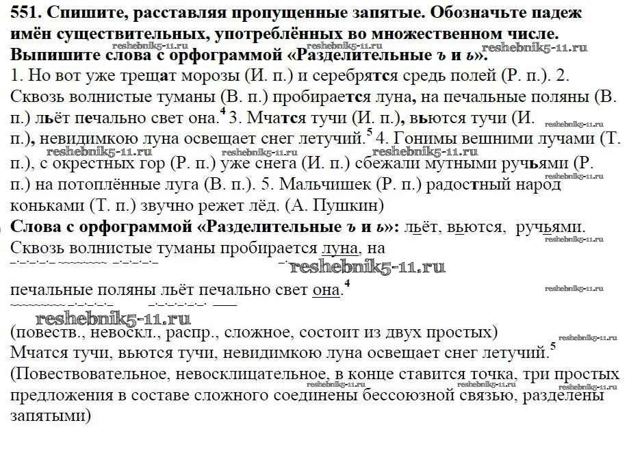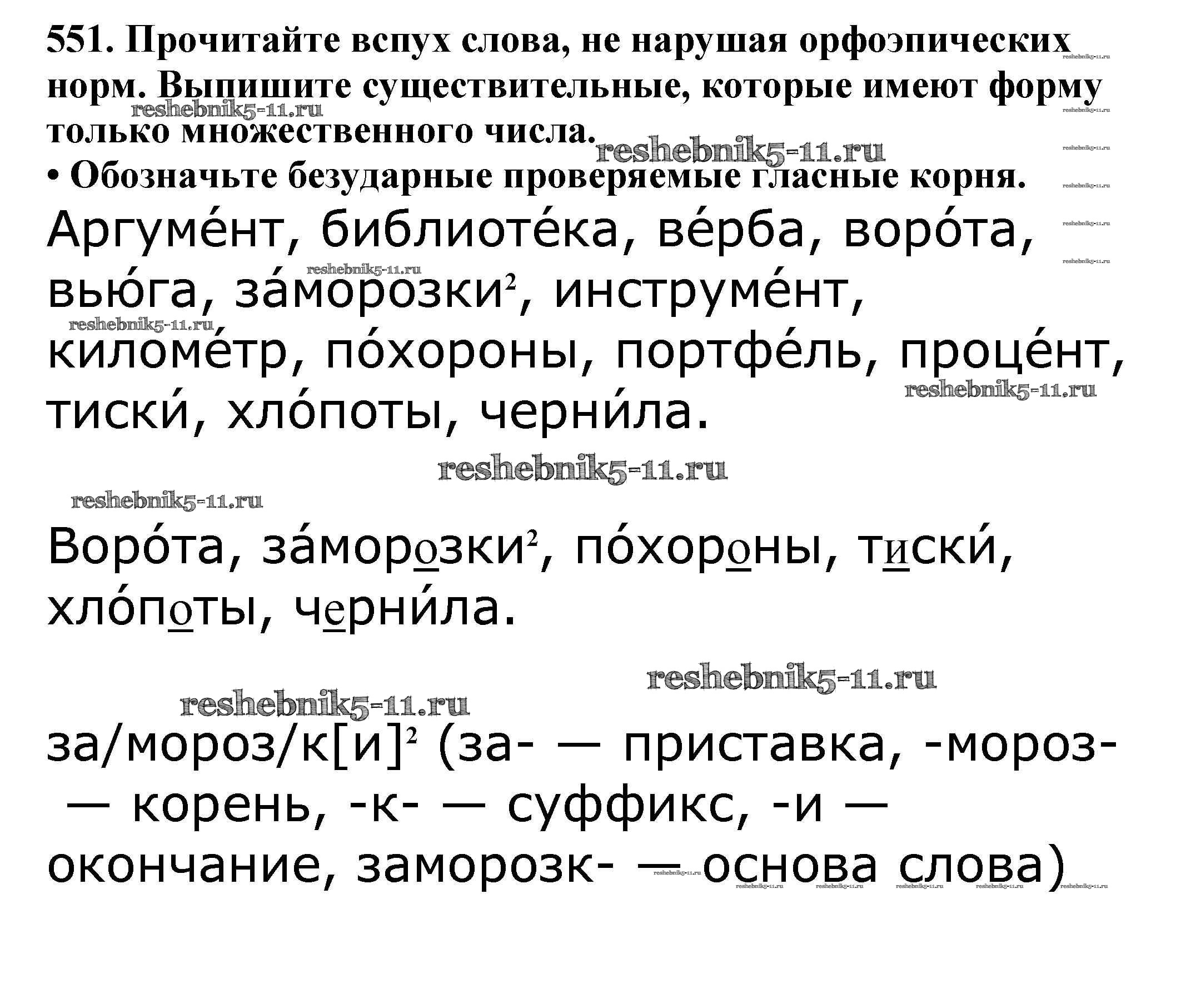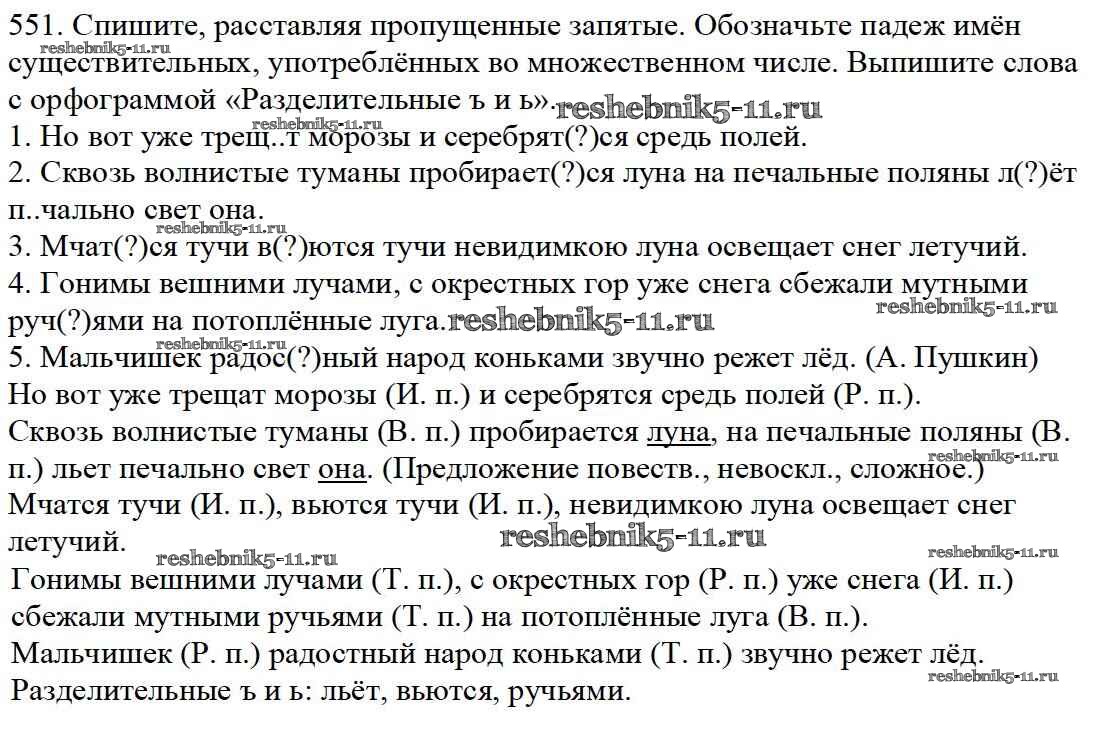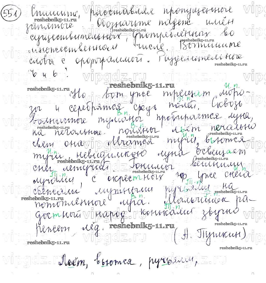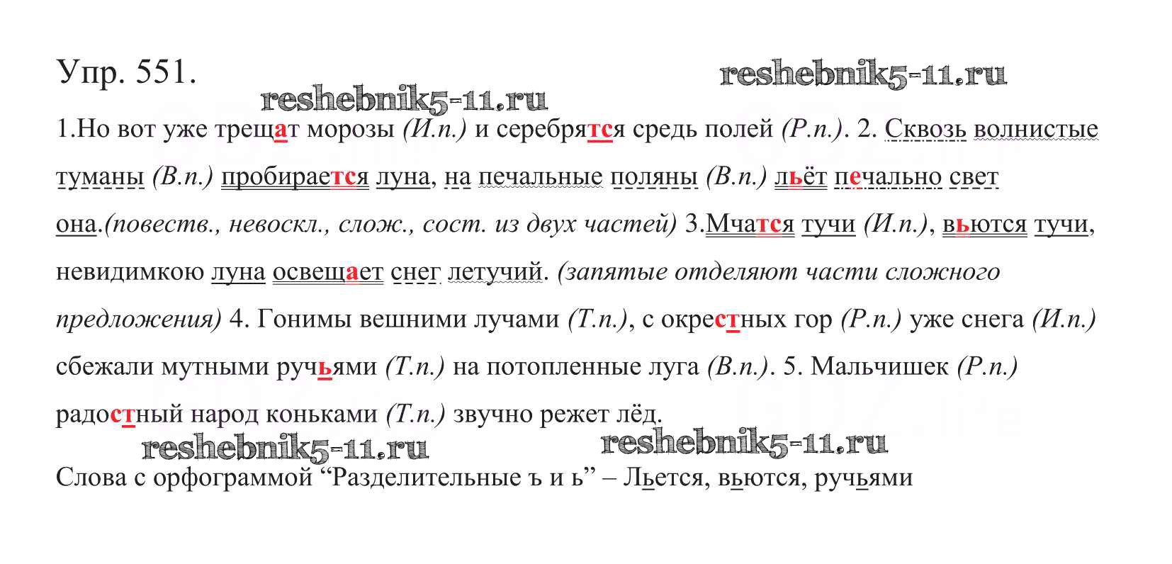 Готовая домашняя работа с ответами по Русскому языку за 5 класс Баранов, Ладыженская, Тростенцова, Кулибаба, Григорян Учебник Часть 1, 2 Просвещение 2016 ФГОС - Часть 2. Упражнения 551