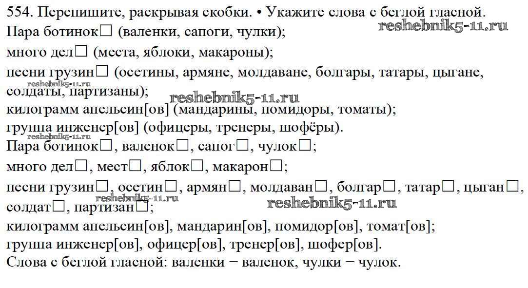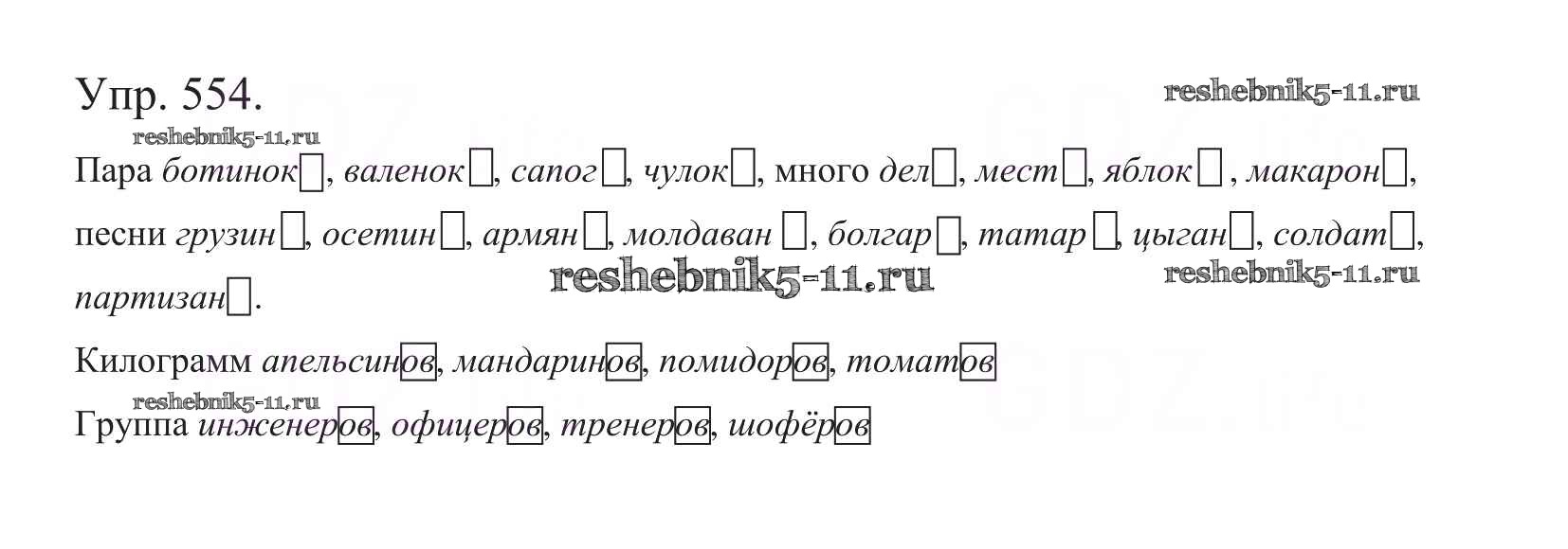 Готовая домашняя работа с ответами по Русскому языку за 5 класс Баранов, Ладыженская, Тростенцова, Кулибаба, Григорян Учебник Часть 1, 2 Просвещение 2016 ФГОС - Часть 2. Упражнения 554