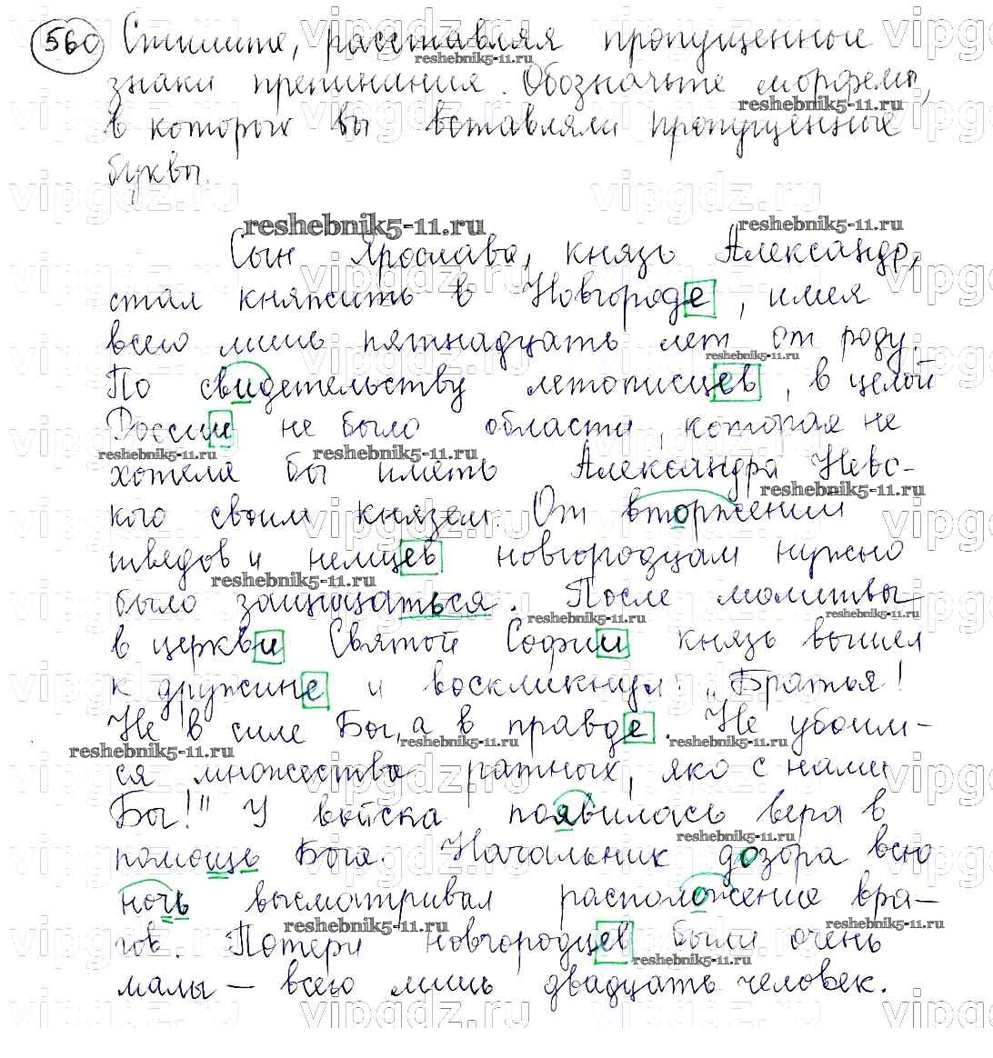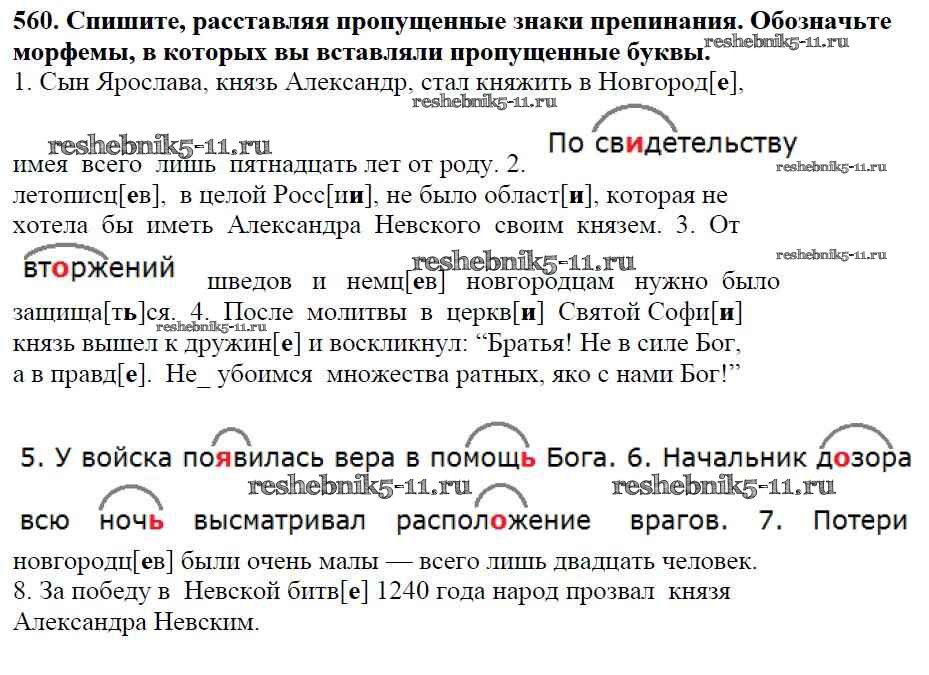 Готовая домашняя работа с ответами по Русскому языку за 5 класс Баранов, Ладыженская, Тростенцова, Кулибаба, Григорян Учебник Часть 1, 2 Просвещение 2016 ФГОС - Часть 2. Упражнения 560