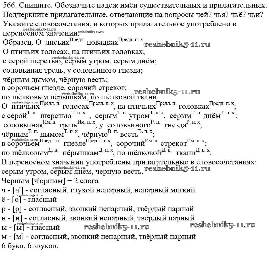 Готовая домашняя работа с ответами по Русскому языку за 5 класс Баранов, Ладыженская, Тростенцова, Кулибаба, Григорян Учебник Часть 1, 2 Просвещение 2016 ФГОС - Часть 2. Упражнения 566