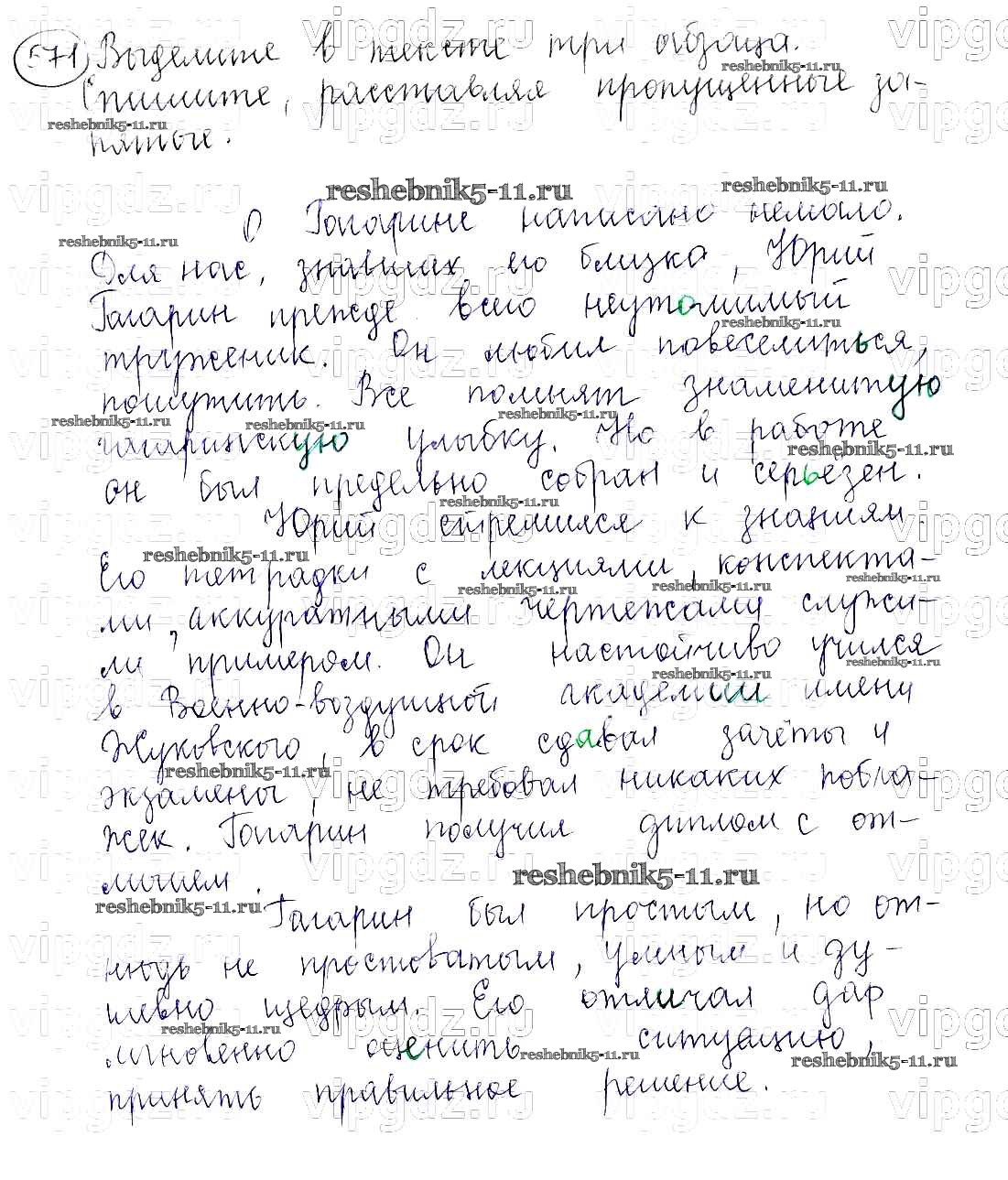 Готовая домашняя работа с ответами по Русскому языку за 5 класс Баранов, Ладыженская, Тростенцова, Кулибаба, Григорян Учебник Часть 1, 2 Просвещение 2016 ФГОС - Часть 2. Упражнения 571