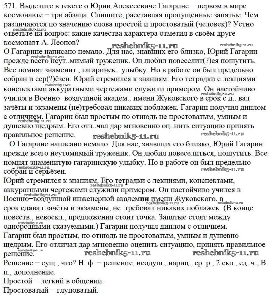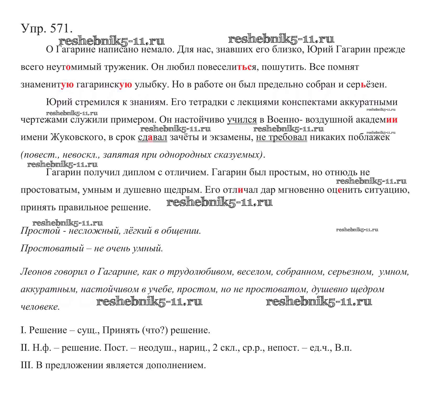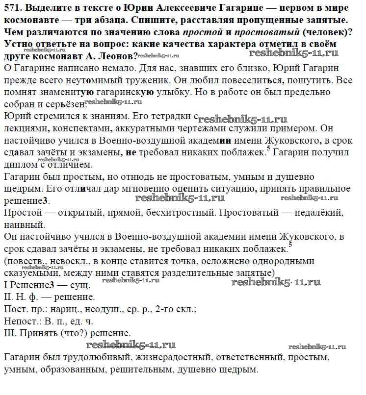 Русский язык за 5 класс Баранов Учебник Просвещение часть 2. упражнение 571