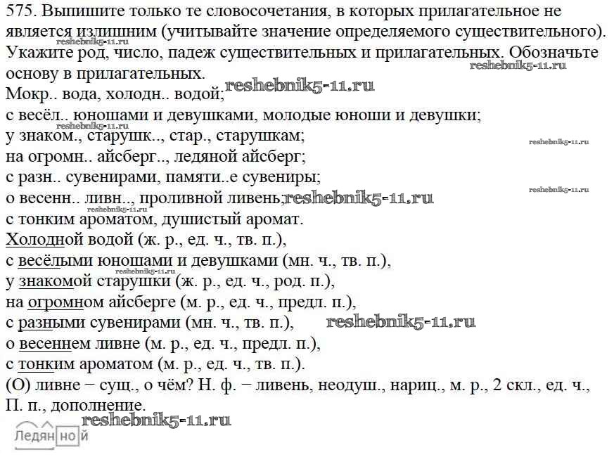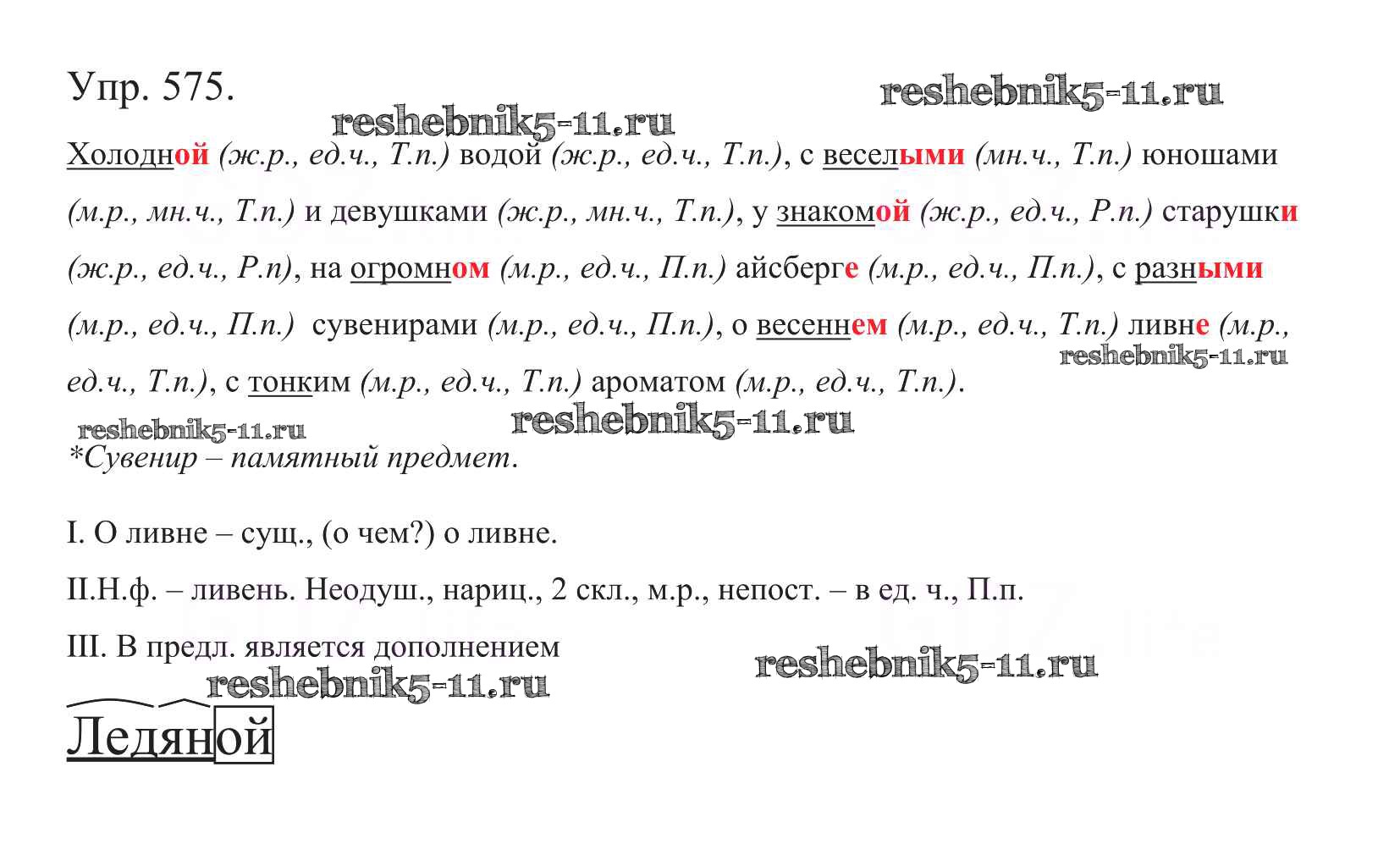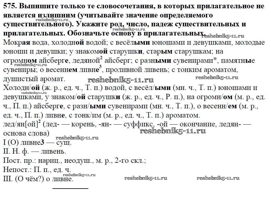 Готовая домашняя работа с ответами по Русскому языку за 5 класс Баранов, Ладыженская, Тростенцова, Кулибаба, Григорян Учебник Часть 1, 2 Просвещение 2016 ФГОС - Часть 2. Упражнения 575