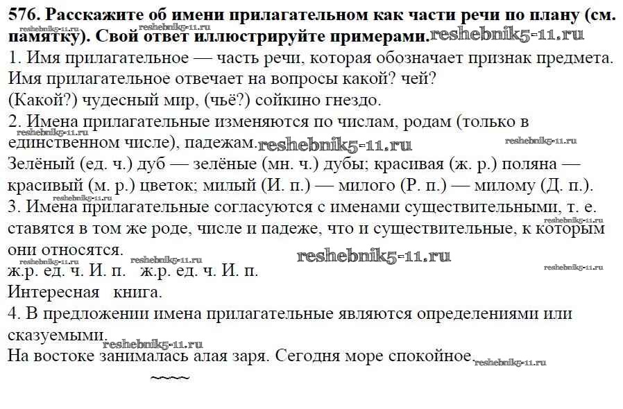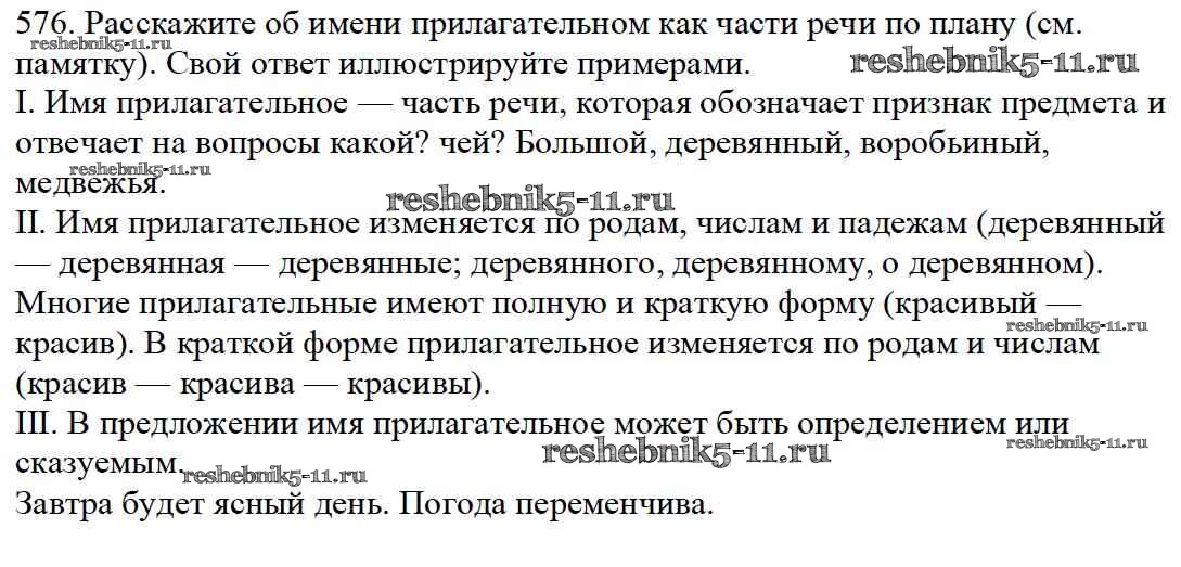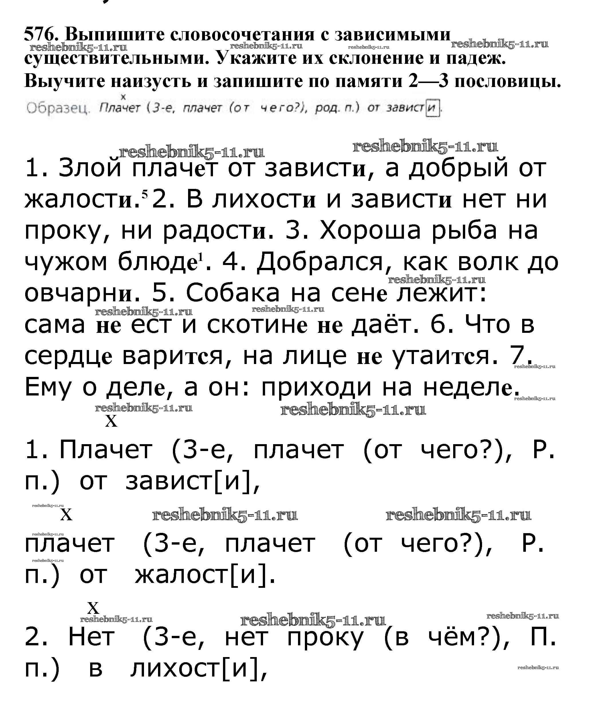 Готовая домашняя работа с ответами по Русскому языку за 5 класс Баранов, Ладыженская, Тростенцова, Кулибаба, Григорян Учебник Часть 1, 2 Просвещение 2016 ФГОС - Часть 2. Упражнения 576