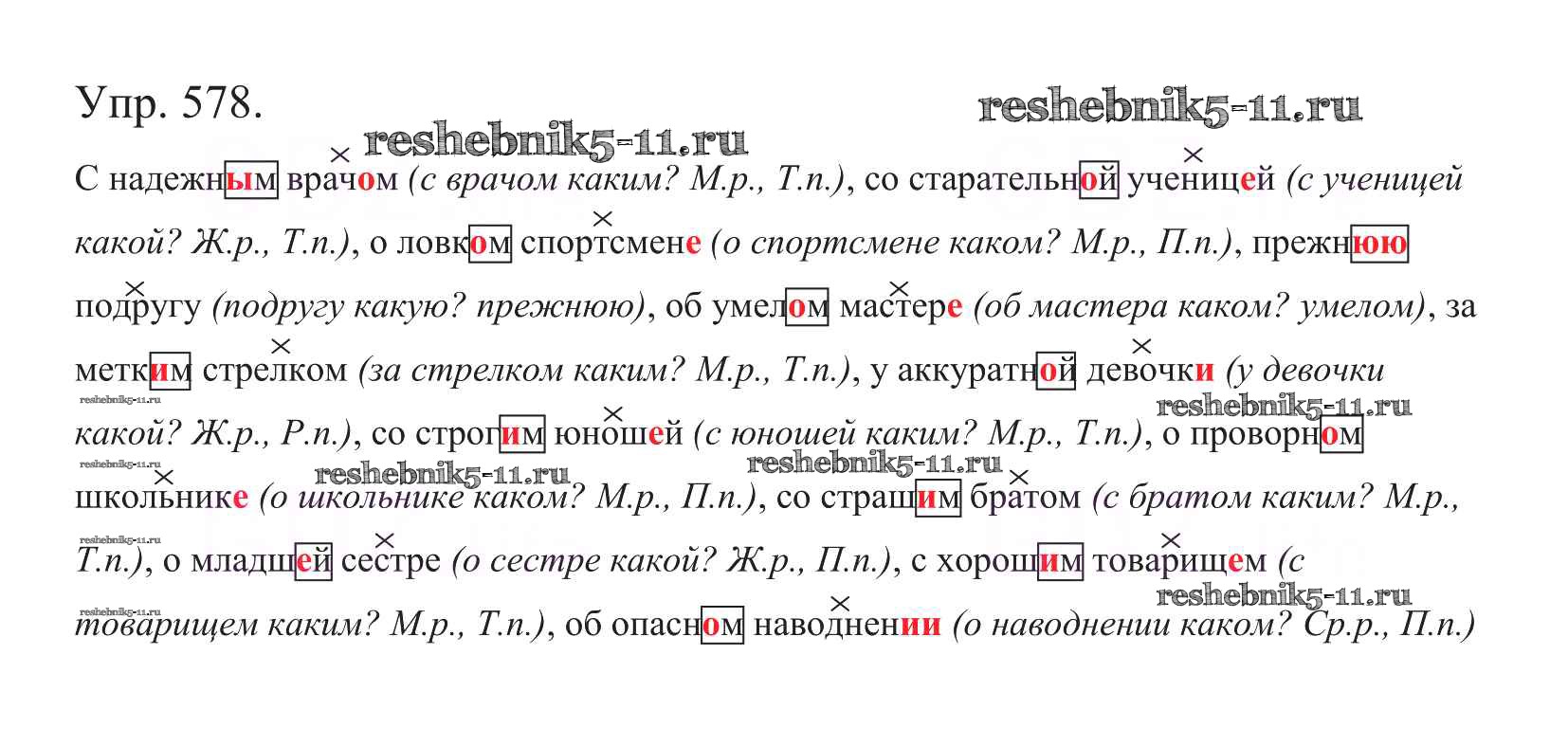 Готовая домашняя работа с ответами по Русскому языку за 5 класс Баранов, Ладыженская, Тростенцова, Кулибаба, Григорян Учебник Часть 1, 2 Просвещение 2016 ФГОС - Часть 2. Упражнения 578