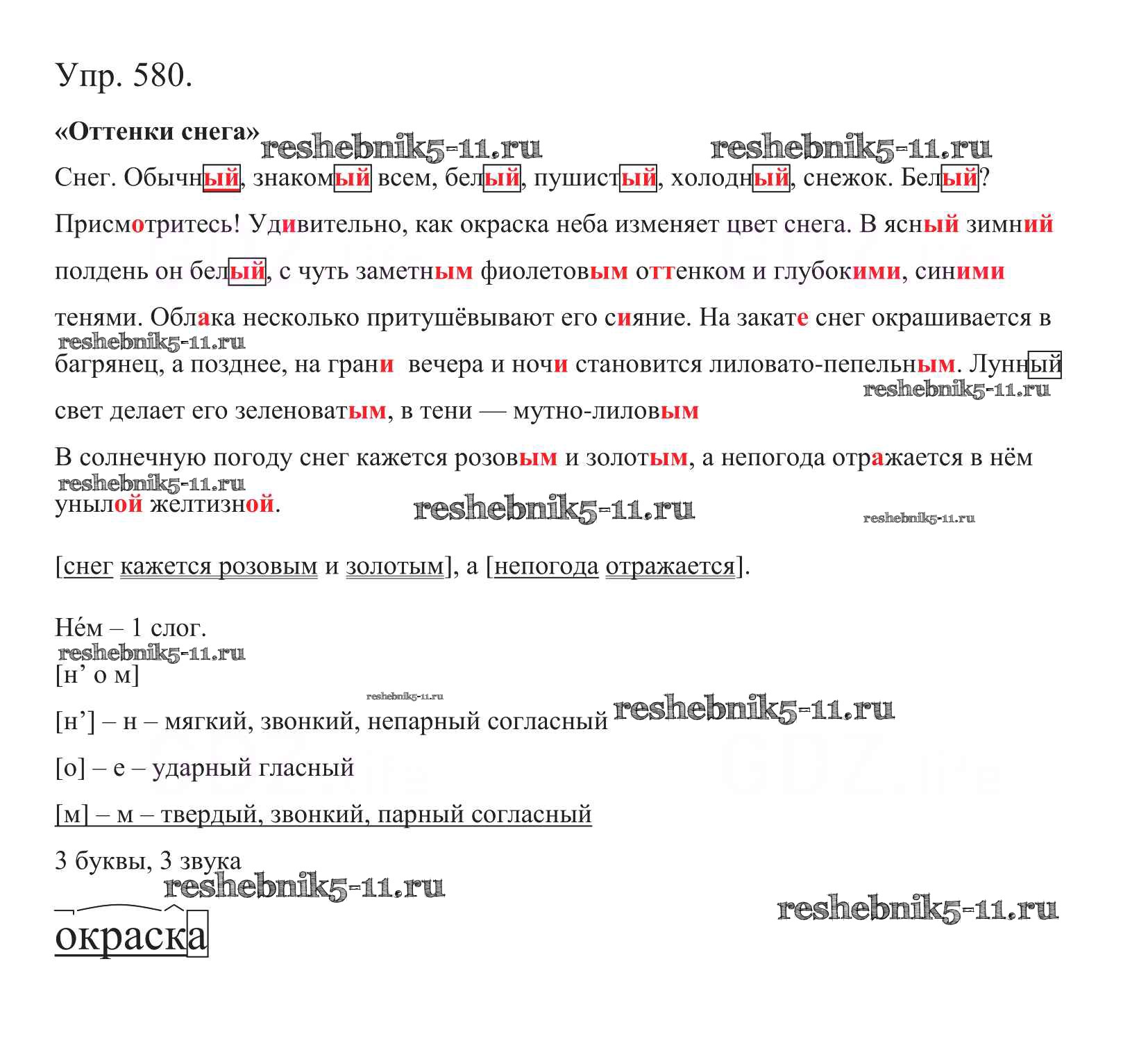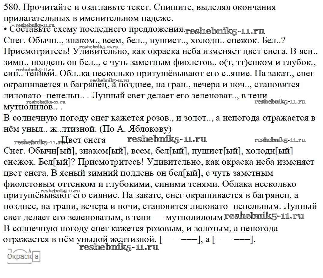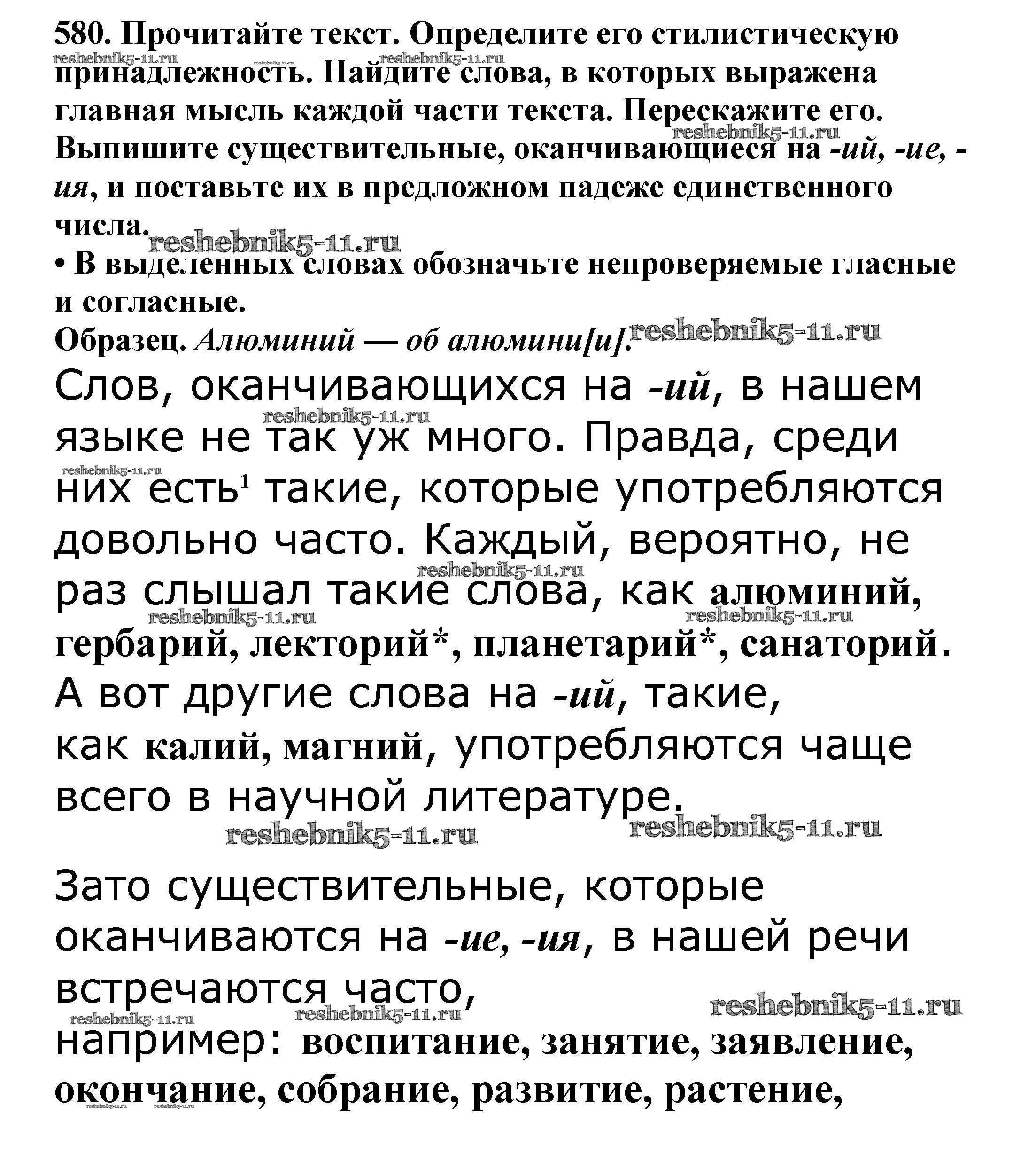 Готовая домашняя работа с ответами по Русскому языку за 5 класс Баранов, Ладыженская, Тростенцова, Кулибаба, Григорян Учебник Часть 1, 2 Просвещение 2016 ФГОС - Часть 2. Упражнения 580