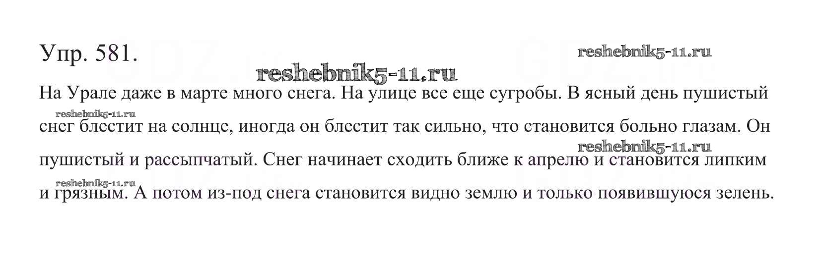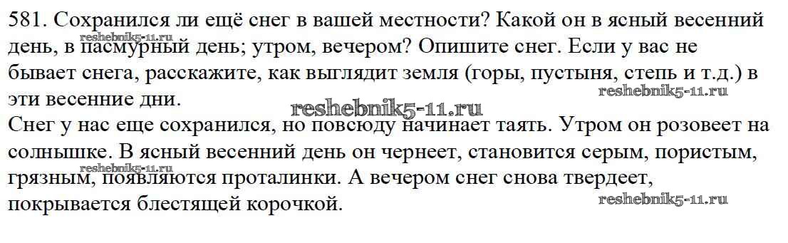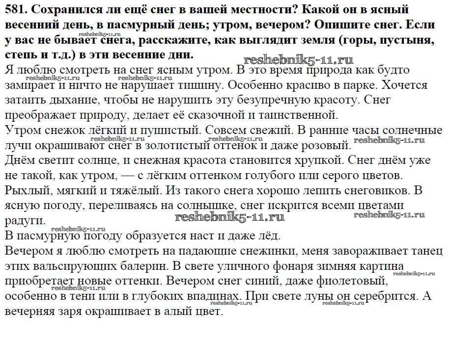 Готовая домашняя работа с ответами по Русскому языку за 5 класс Баранов, Ладыженская, Тростенцова, Кулибаба, Григорян Учебник Часть 1, 2 Просвещение 2016 ФГОС - Часть 2. Упражнения 581