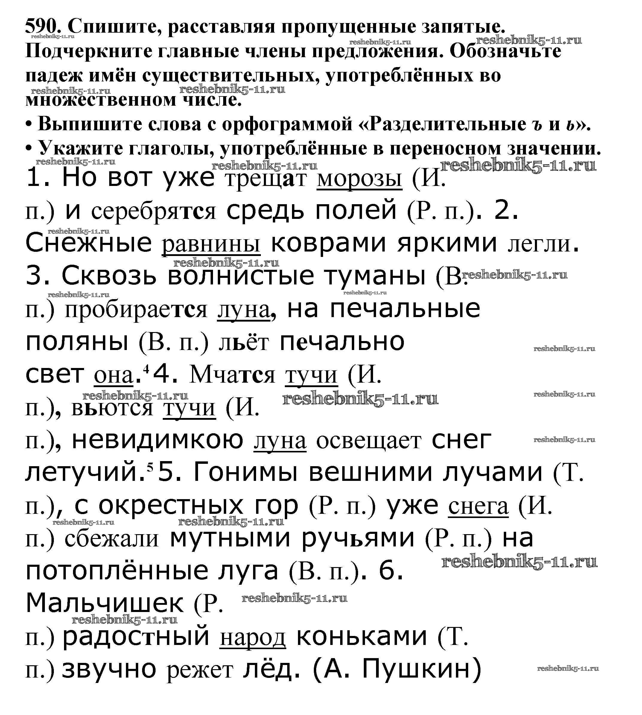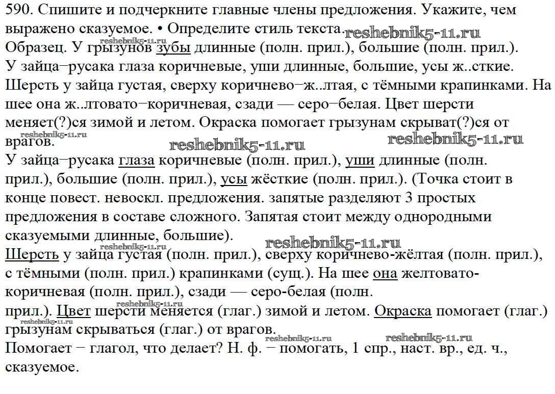 Готовая домашняя работа с ответами по Русскому языку за 5 класс Баранов, Ладыженская, Тростенцова, Кулибаба, Григорян Учебник Часть 1, 2 Просвещение 2016 ФГОС - Часть 2. Упражнения 590