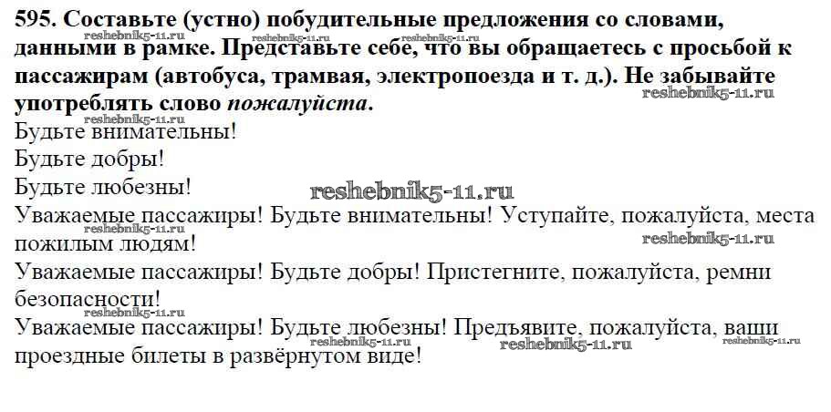 Русский язык за 5 класс Баранов Учебник Просвещение часть 2. упражнение 595