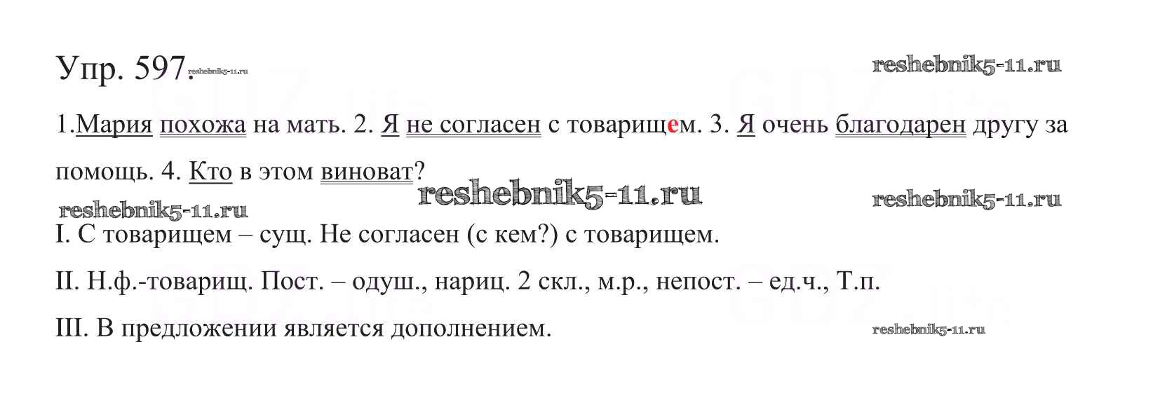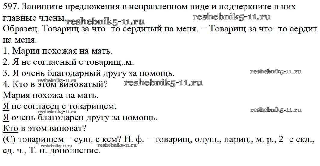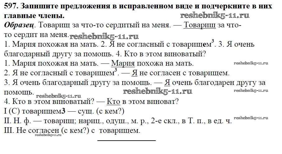 Готовая домашняя работа с ответами по Русскому языку за 5 класс Баранов, Ладыженская, Тростенцова, Кулибаба, Григорян Учебник Часть 1, 2 Просвещение 2016 ФГОС - Часть 2. Упражнения 597