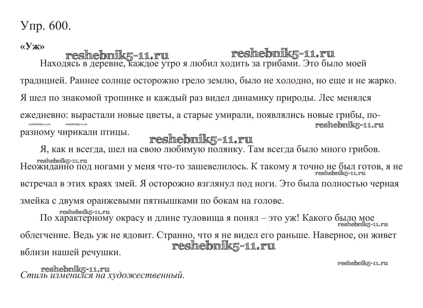 Русский язык за 5 класс Баранов Учебник Просвещение часть 2. упражнение 600