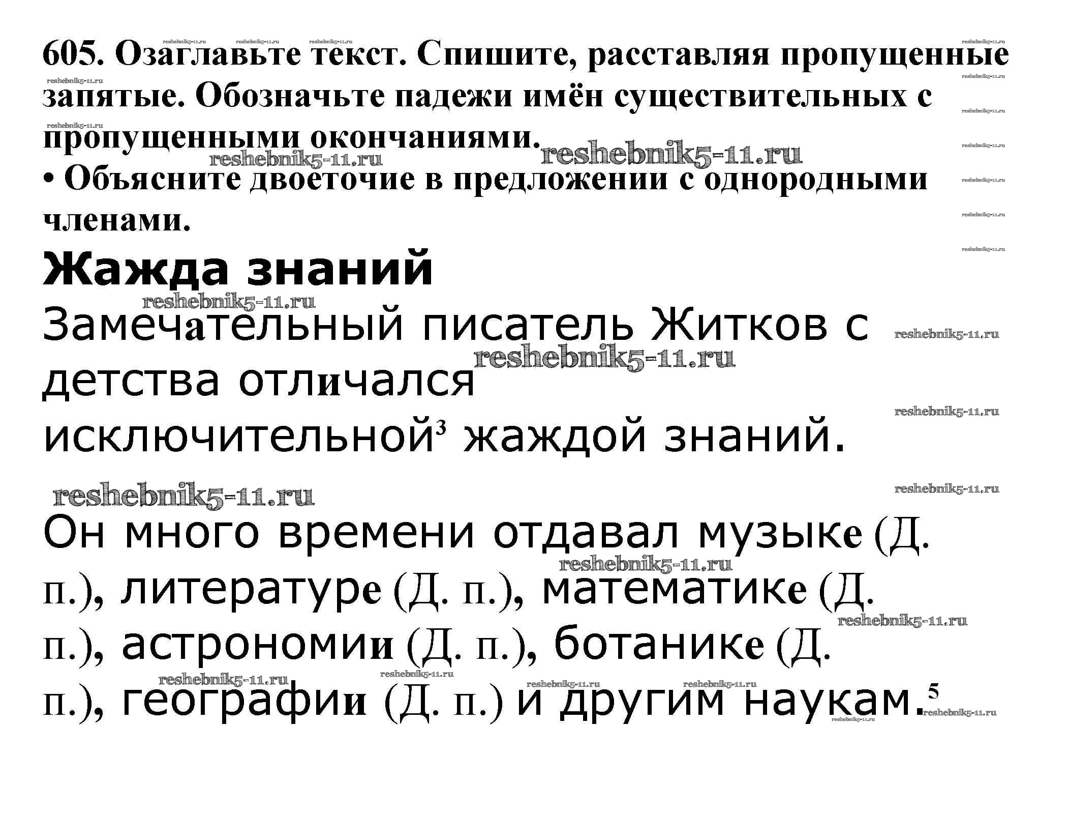 Русский язык за 5 класс Баранов Учебник Просвещение часть 2. упражнение 605